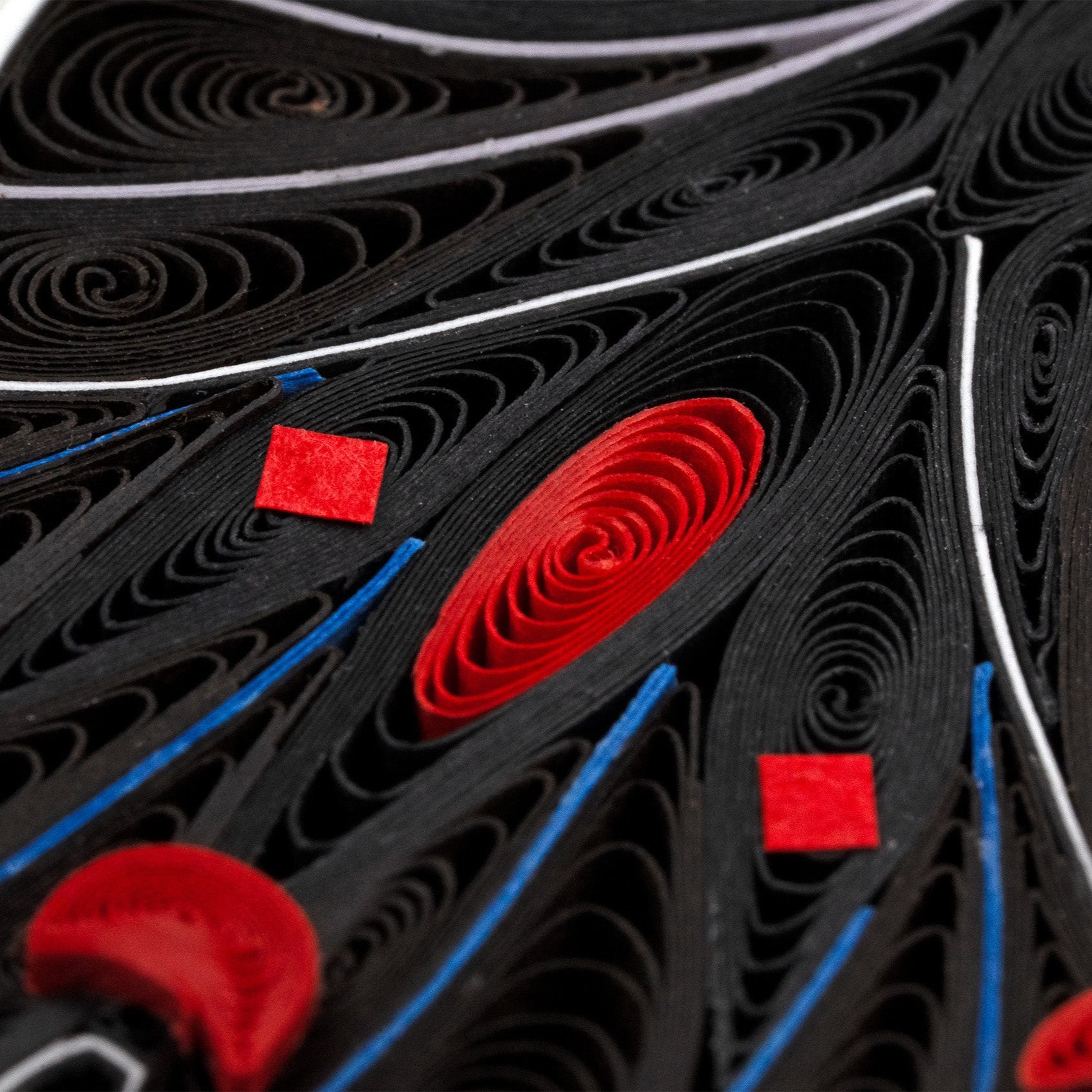 The art of quilling is the process of rolling and coiling strips of paper then arranging and glueing them to create a tactile three-dimensional design. Our cards are all handcrafted using this art form and can often be sent as gifts or art and more than just a card.