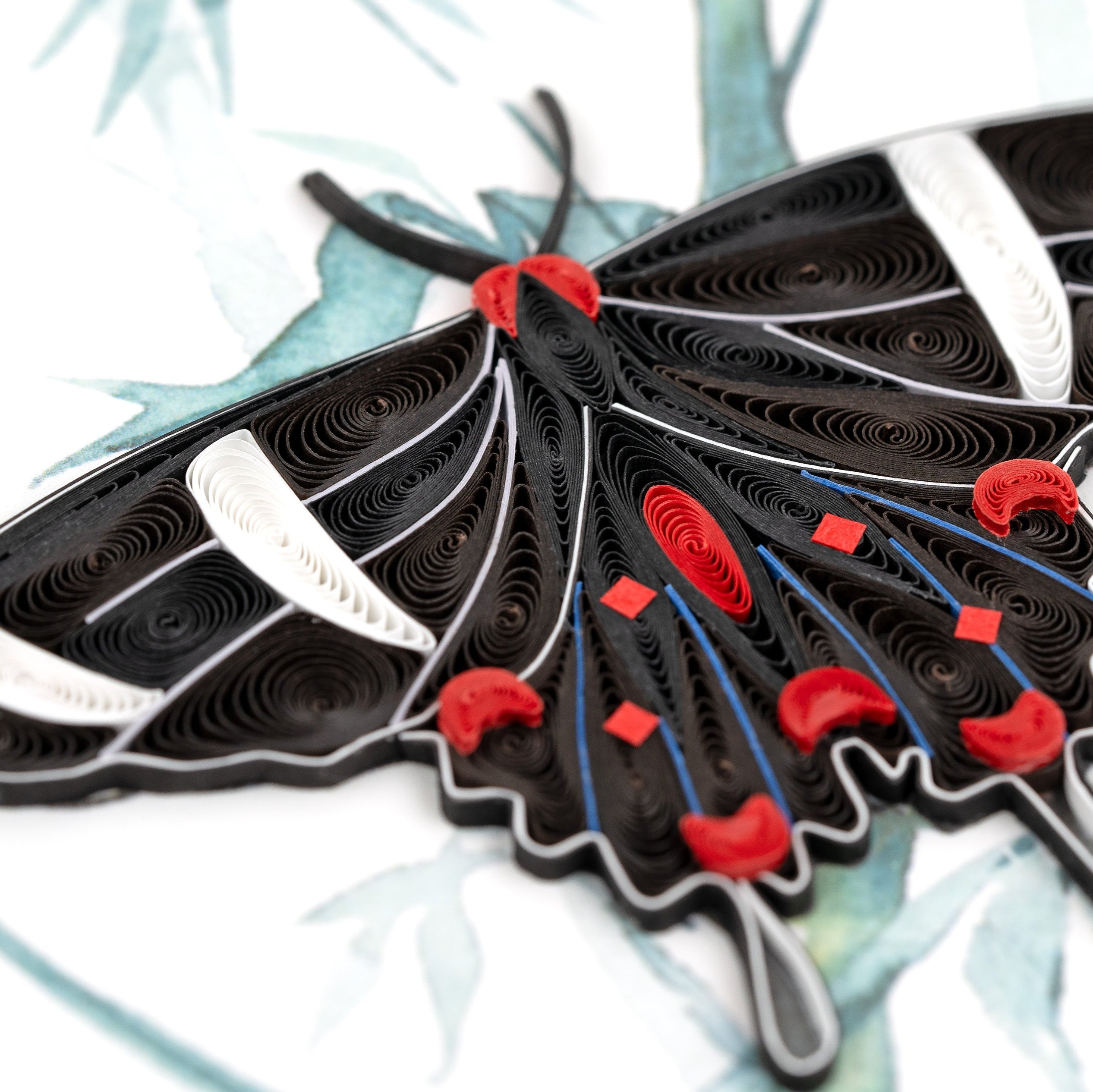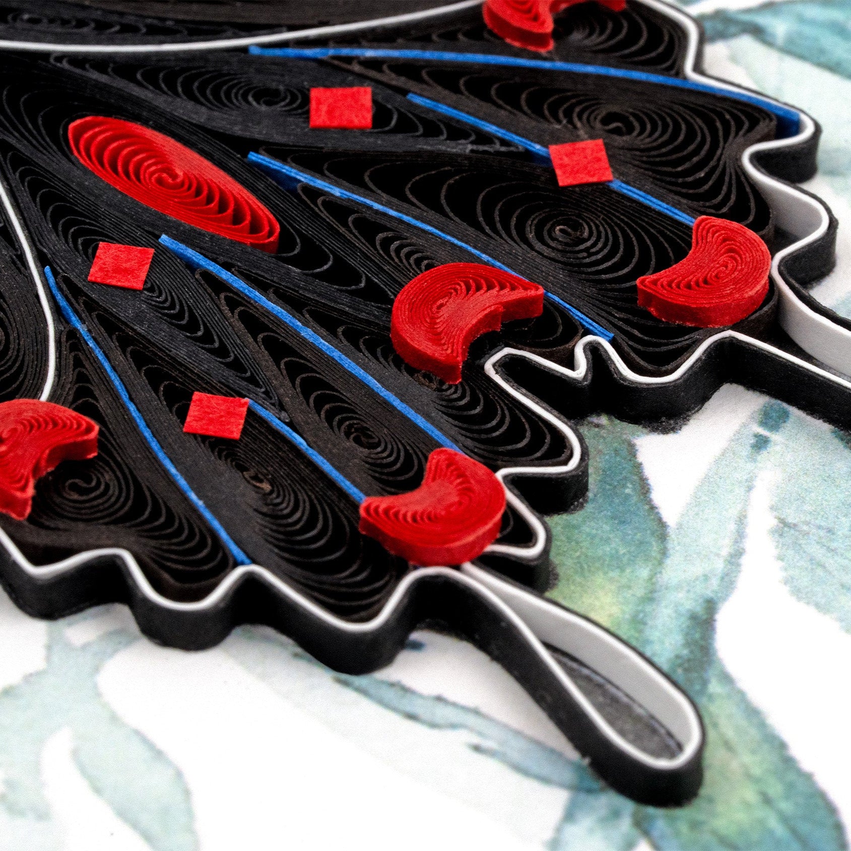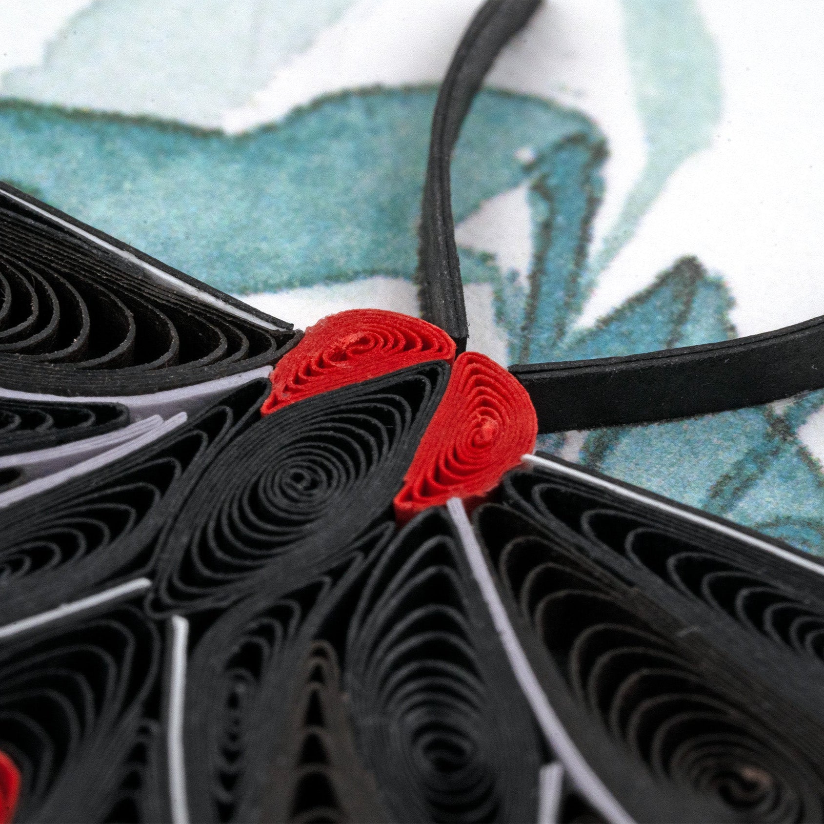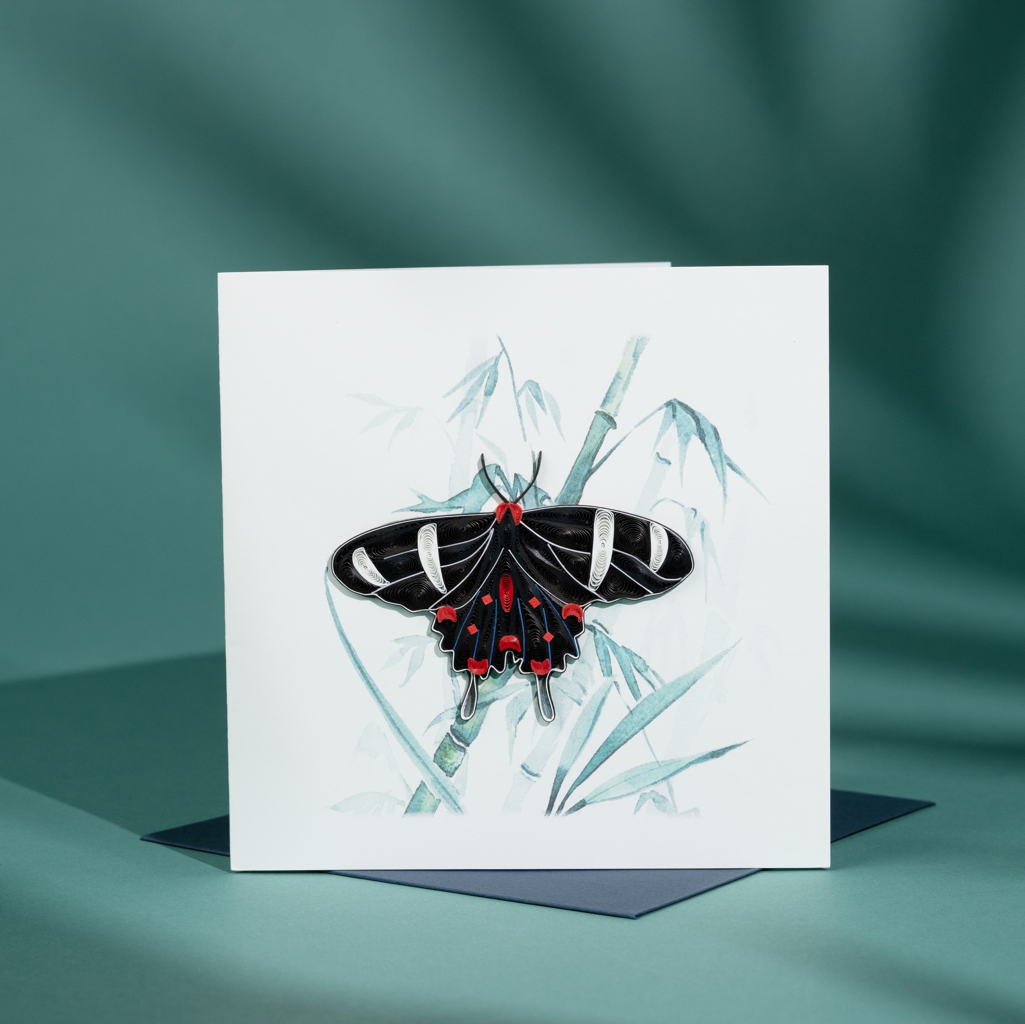 Celebrate the elegance of nature with this quilled greeting card featuring a black butterfly on bamboo. Handcrafted with intricate detail, the striking butterfly and graceful bamboo create a stunning design. Perfect for any occasion, this card adds a touch of natural beauty to your heartfelt messages.