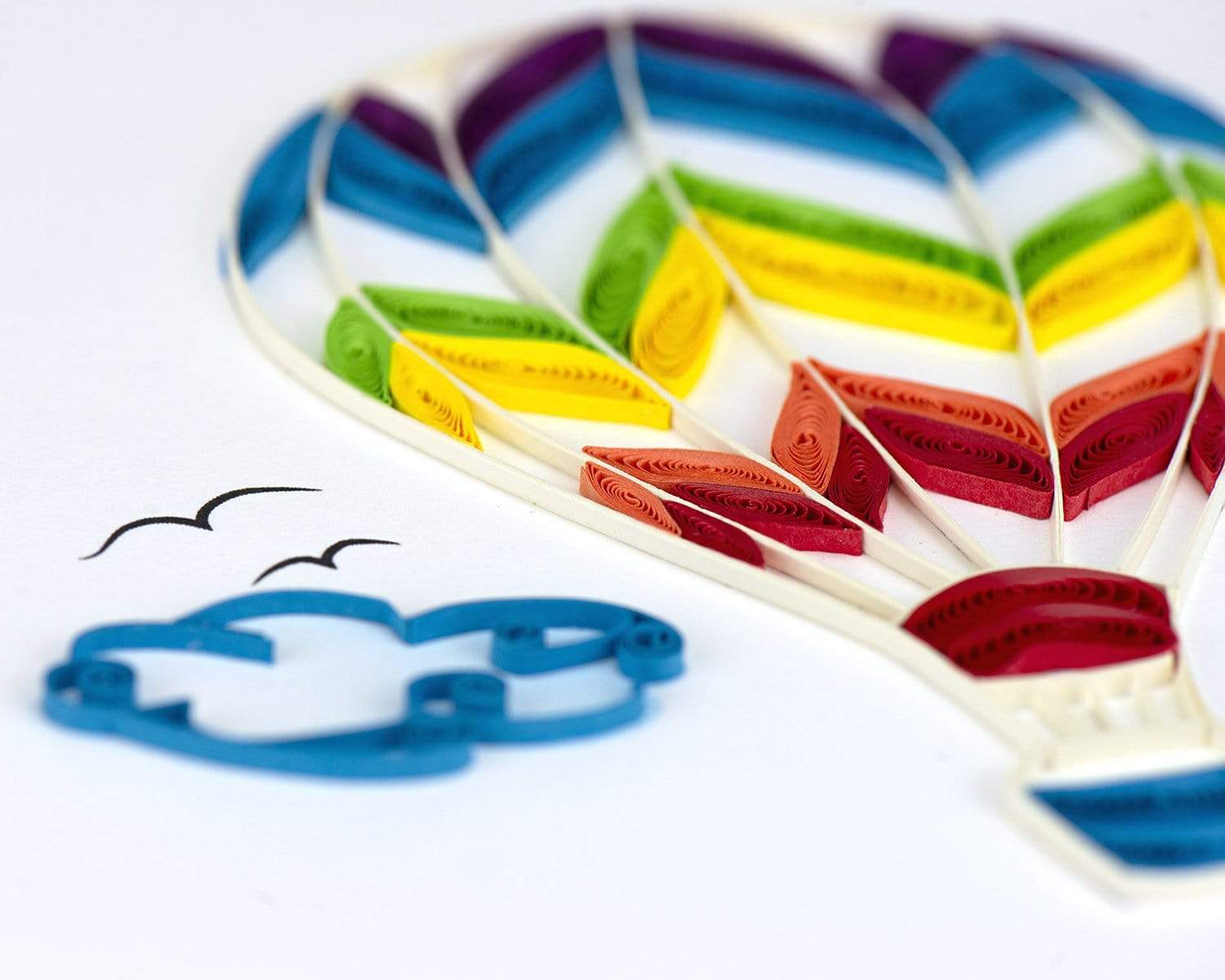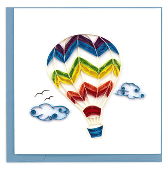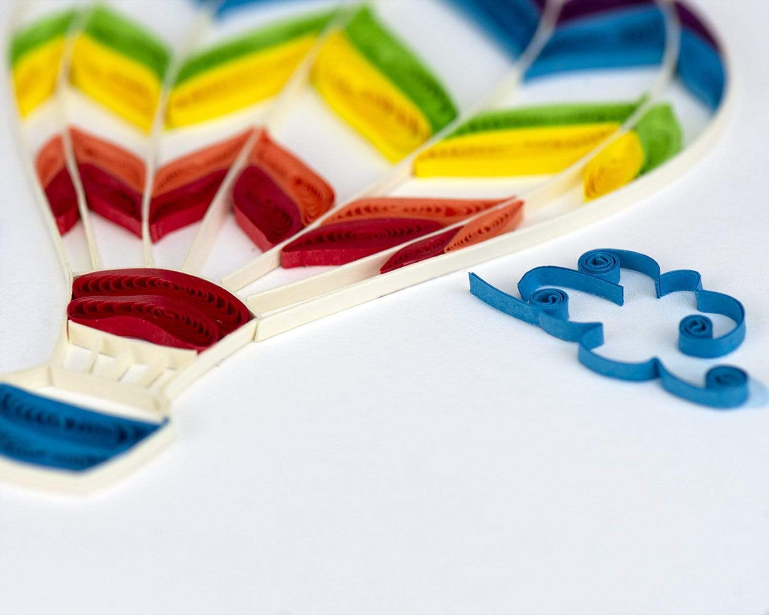 Fly together to new heights with this beautiful piece of paper art! Our Quilled Hot Air Balloon card celebrates your successes with bright colors of red, blue and yellow as it flies through the clouds.