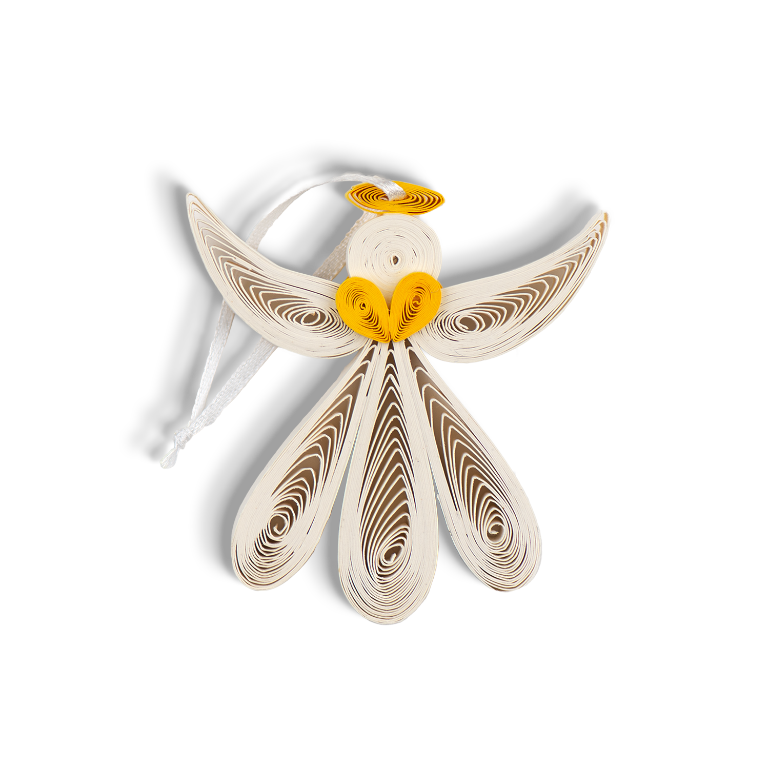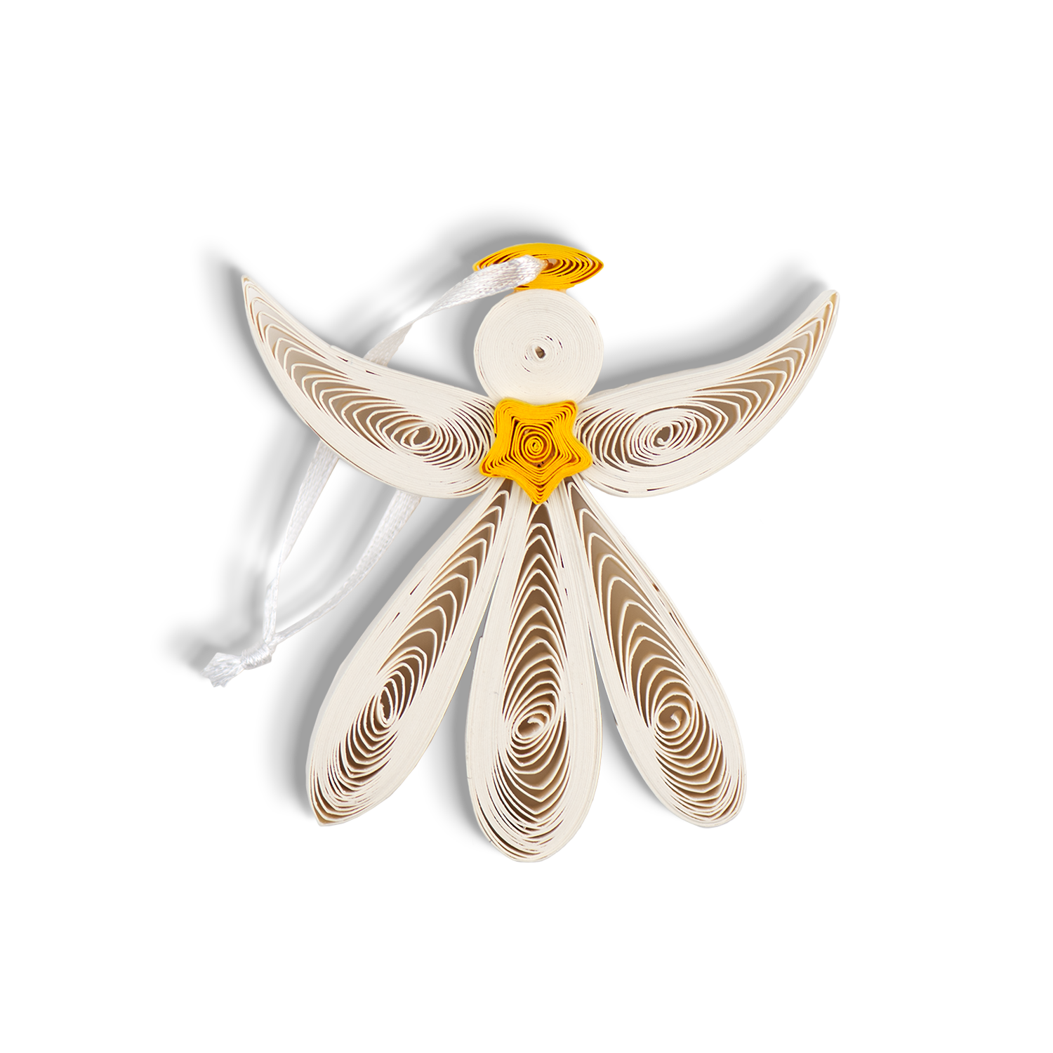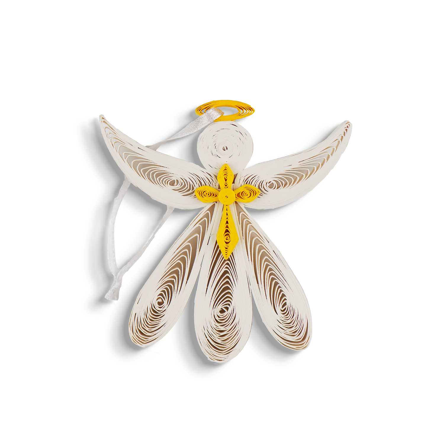 Introducing Quilling Card's handmade paper angel ornament, a breathtakingly beautiful addition to your holiday decor. Intricately crafted from paper quilling, this unique ornament captures the magical essence of the holiday season. Perfect for hanging on your tree or gifting to someone who appreciates the art of quilling, add a touch of elegance and sophistication to your home this holiday season.