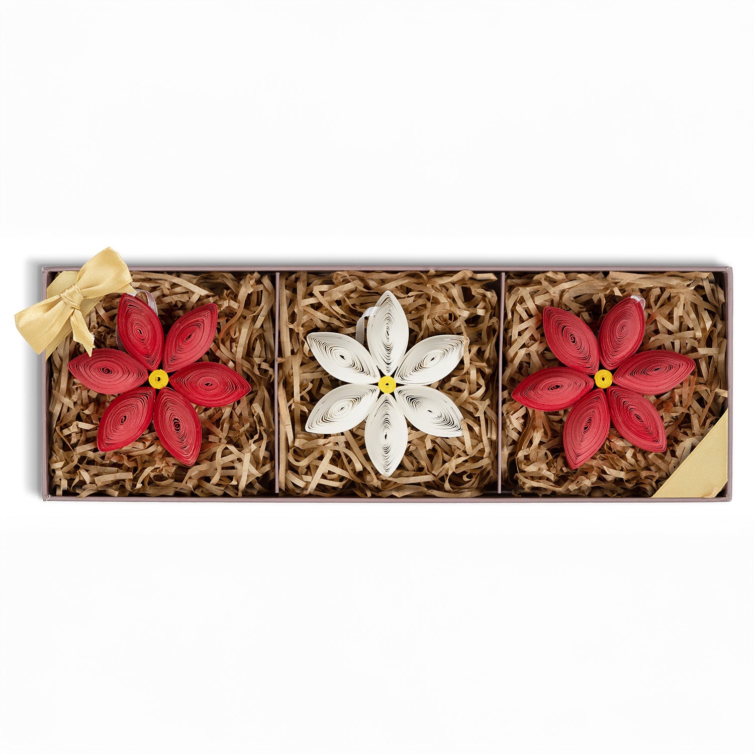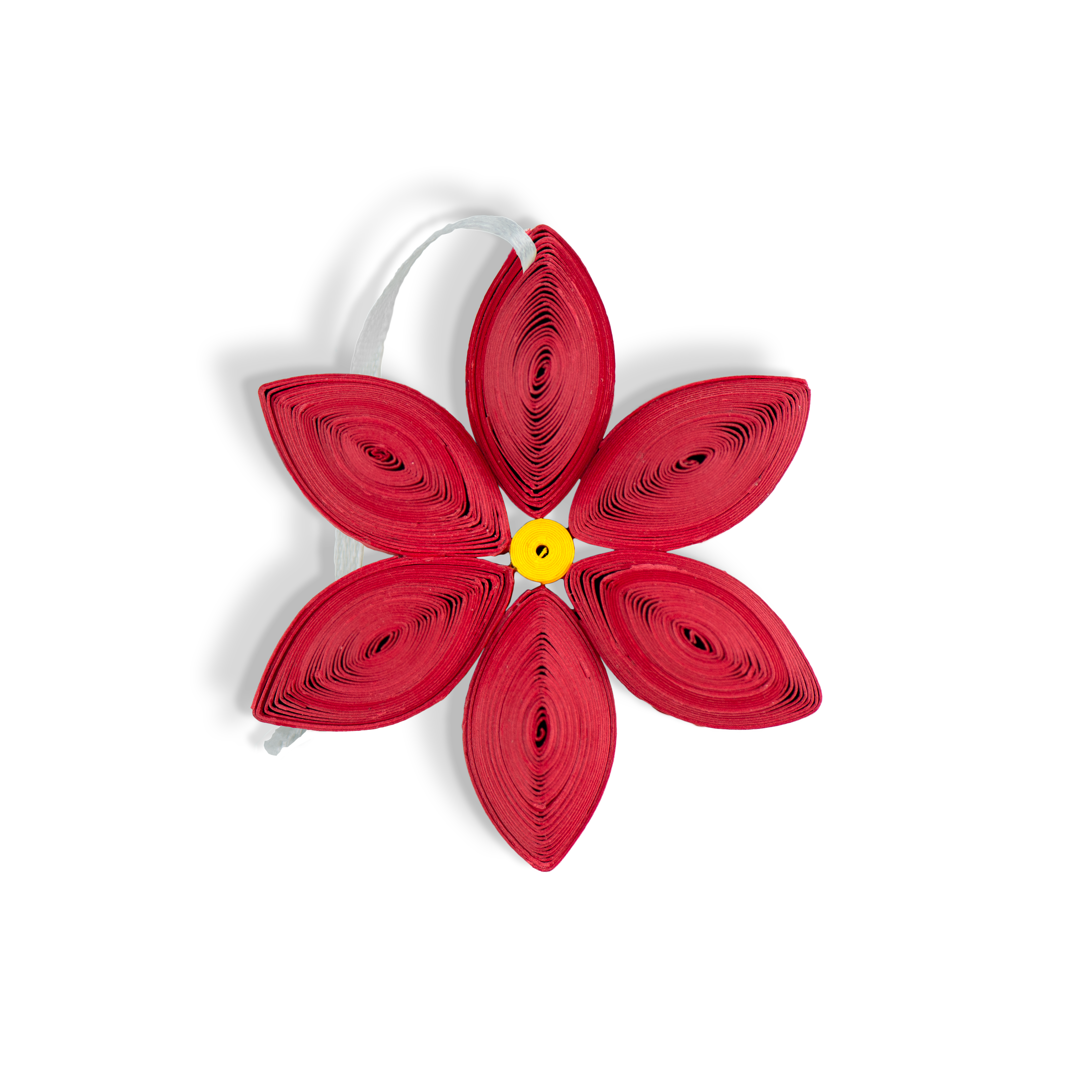 Introducing Quilling Card's handmade paper Poinsettia ornament, a breathtakingly beautiful addition to your holiday decor. Intricately crafted from paper quilling, this unique ornament captures the magical essence of the holiday season. Perfect for hanging on your tree or gifting to someone who appreciates the art of quilling, add a touch of elegance and sophistication to your home this holiday season.