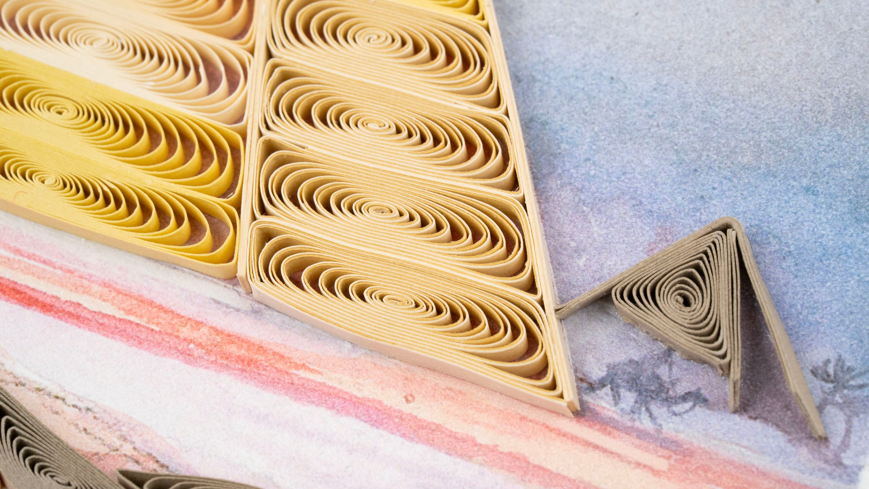 Our talented quillers coil, crimp, and place every individual quill on our cards. You can see more about the quilling process here!
