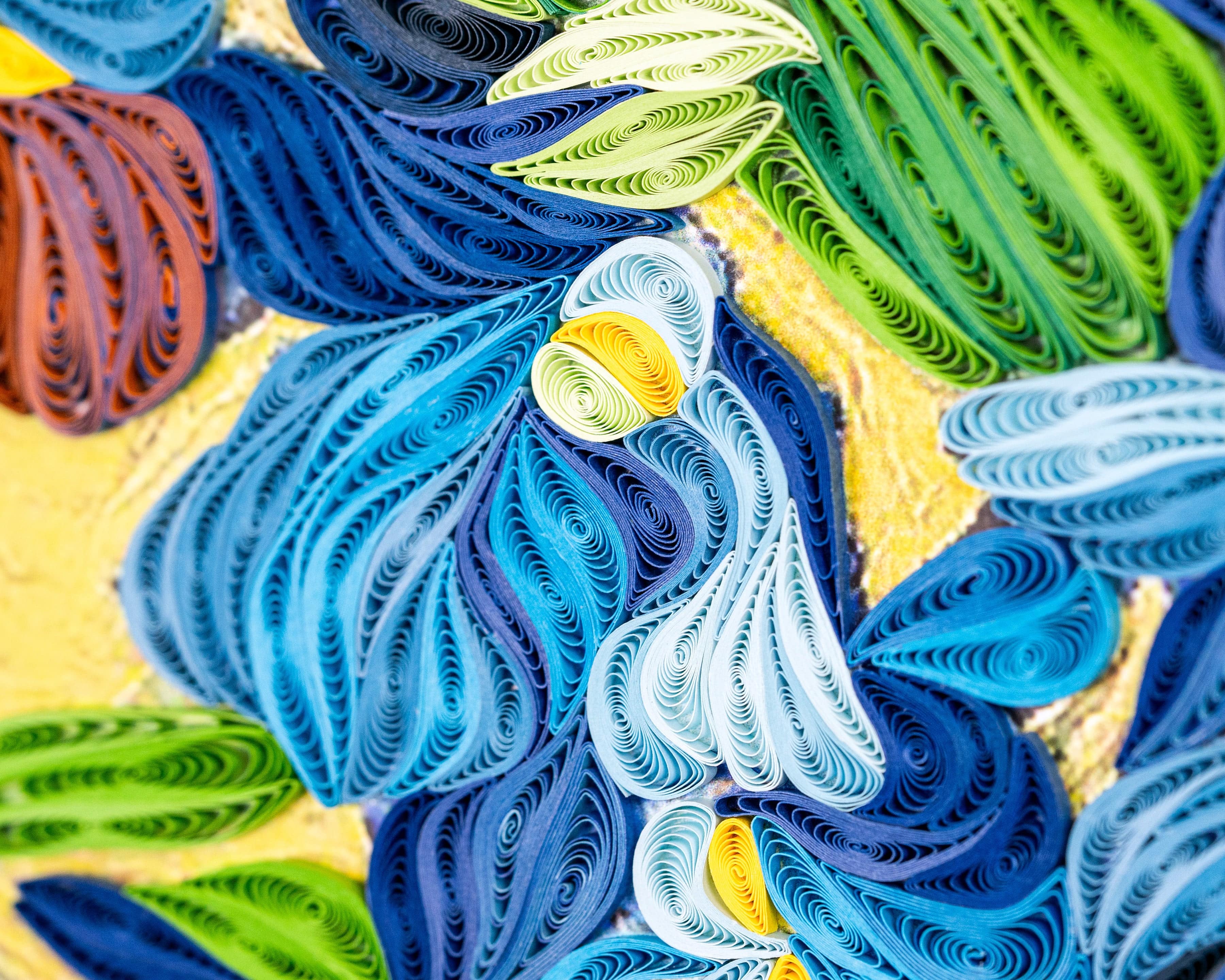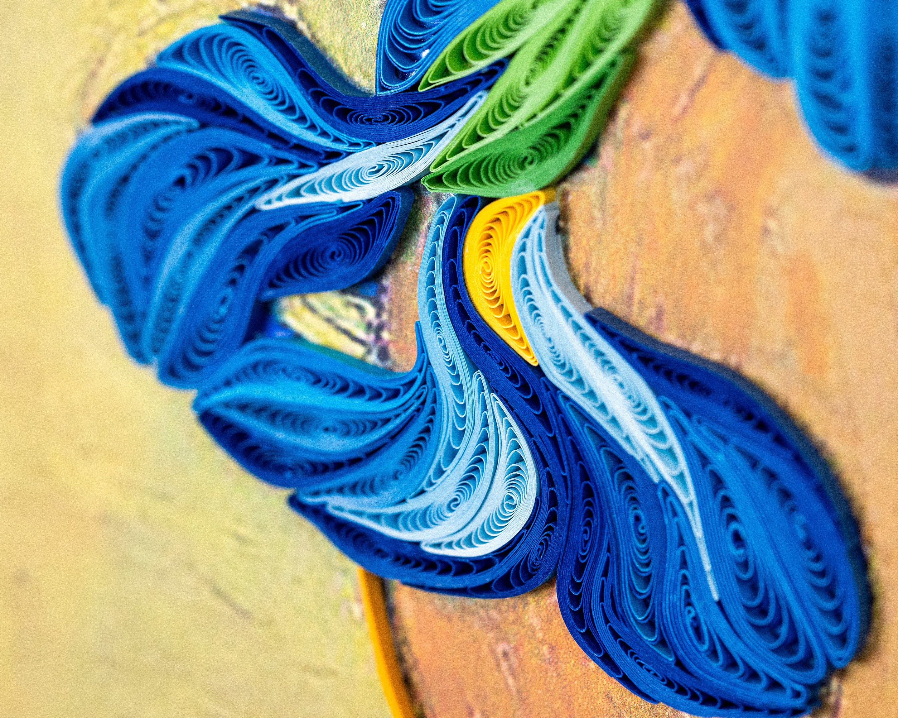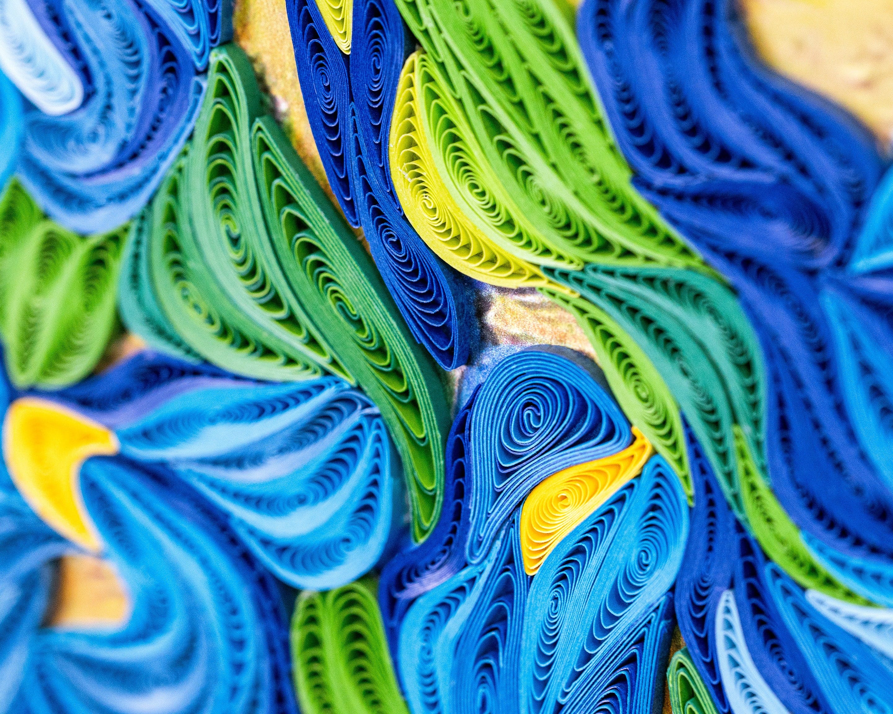 One of the most beloved paintings in the world has been transformed into a quilled masterpiece! Van Gogh's brushstrokes have been meticulously recreated using handcrafted quilled paper strips, resulting in a stunning three-dimensional work of art. This piece is sure to inspire creativity and wonder in any space.