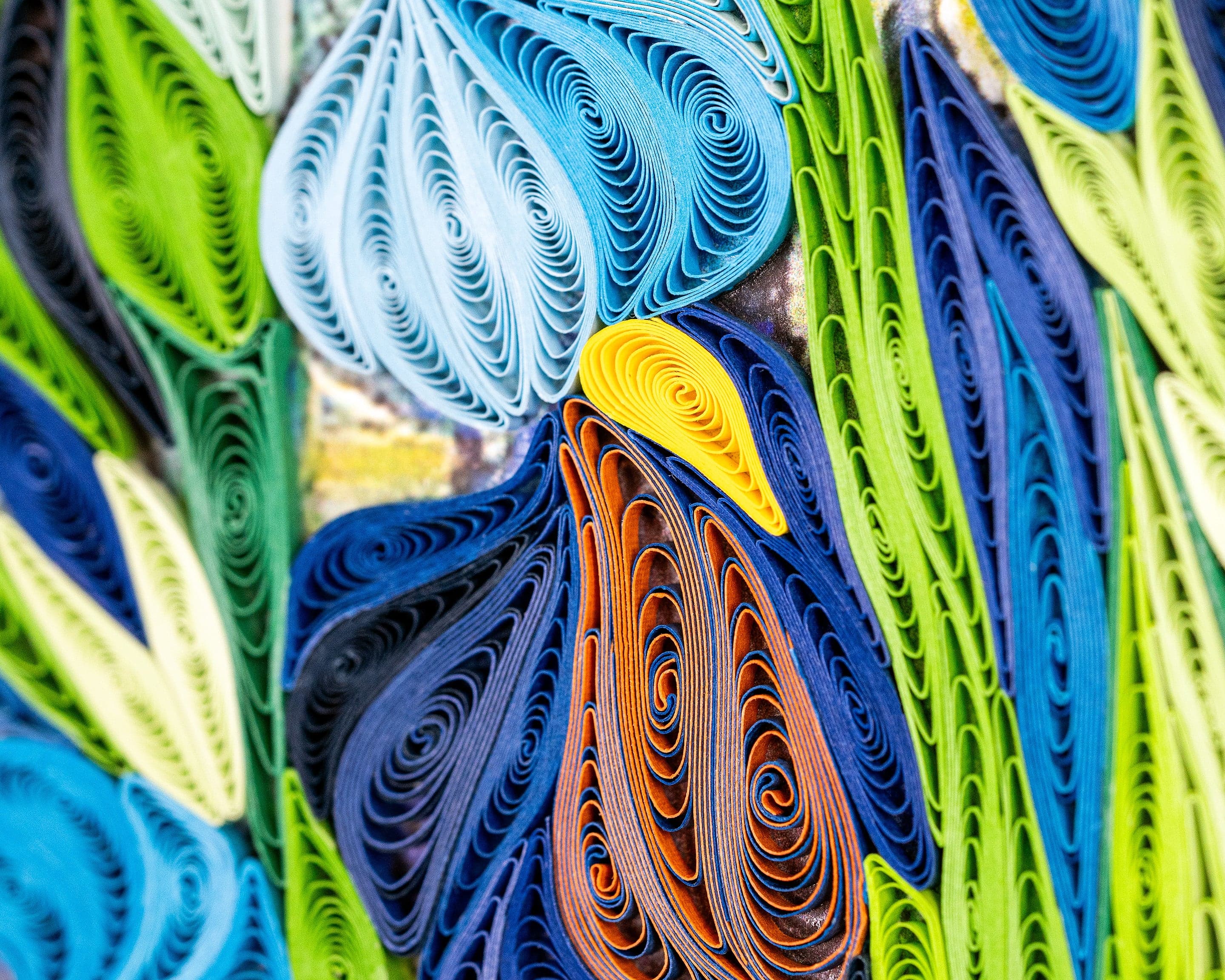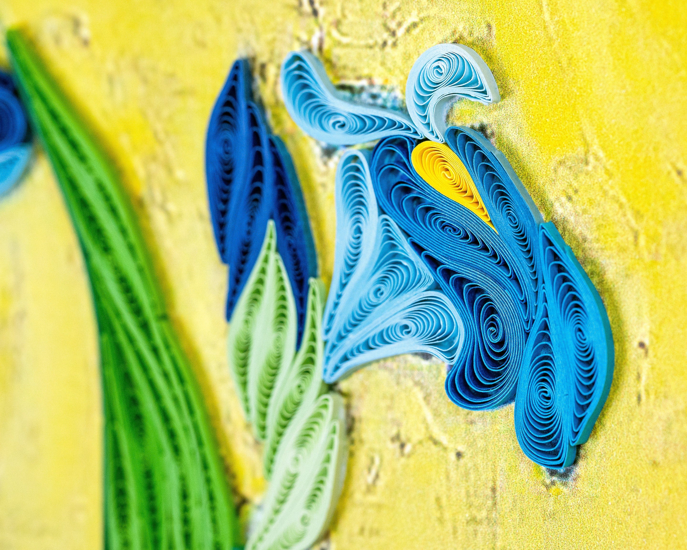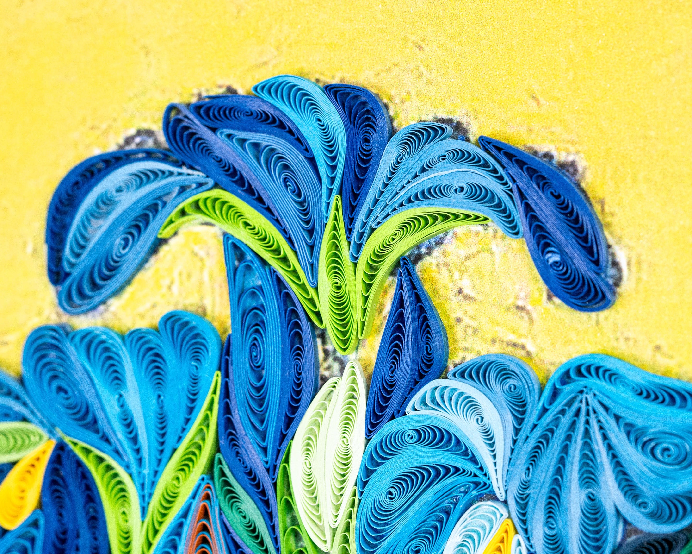 The art of quilling is the process of rolling and coiling strips of paper then arranging and glueing them to create a tactile three-dimensional design. Our cards are all handcrafted using this art form and can often be sent as gifts or art and more than just a card.