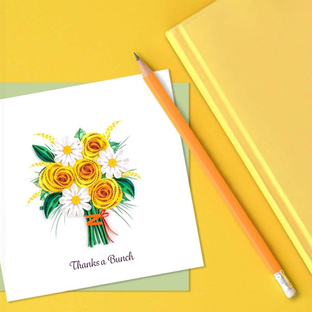 Send a message of gratitude with this thank you card featuring a quilled bouquet of white and yellow flowers—the perfect way to say 'Thanks a Bunch'!