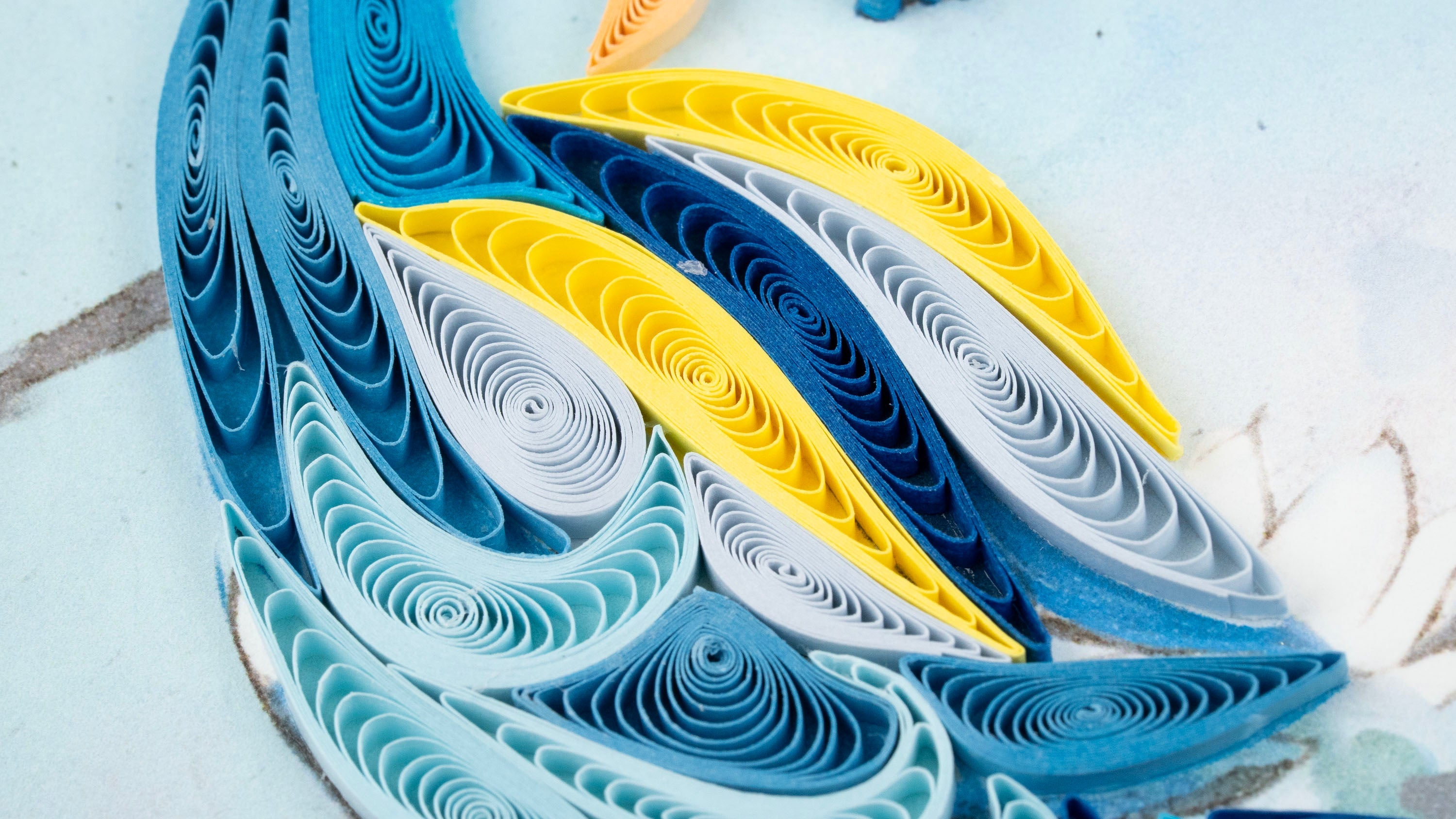 The art of quilling is the process of rolling and coiling strips of paper then arranging and glueing them to create a tactile three-dimensional design. Our cards are all handcrafted using this art form and can often be sent as gifts or art and more than just a card.