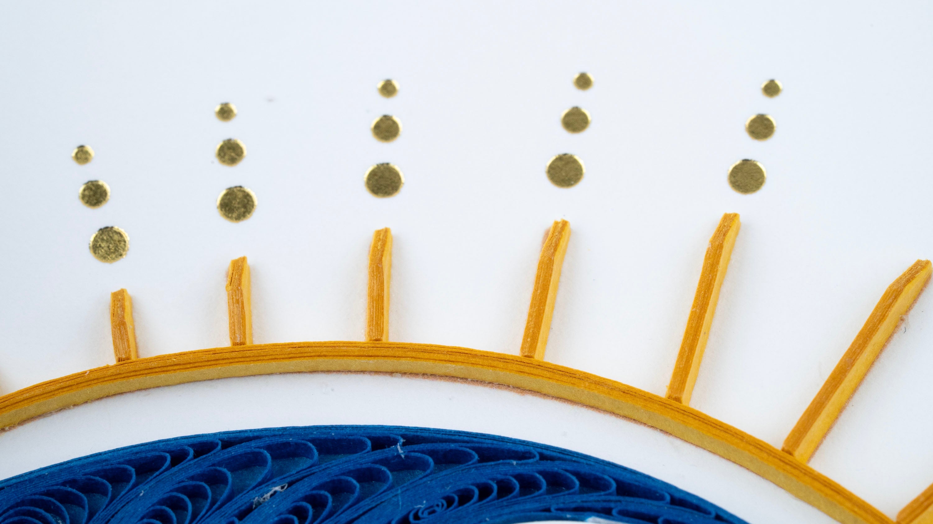 Our talented quillers coil, crimp, and place every individual quill on our cards. You can see more about the quilling process here!