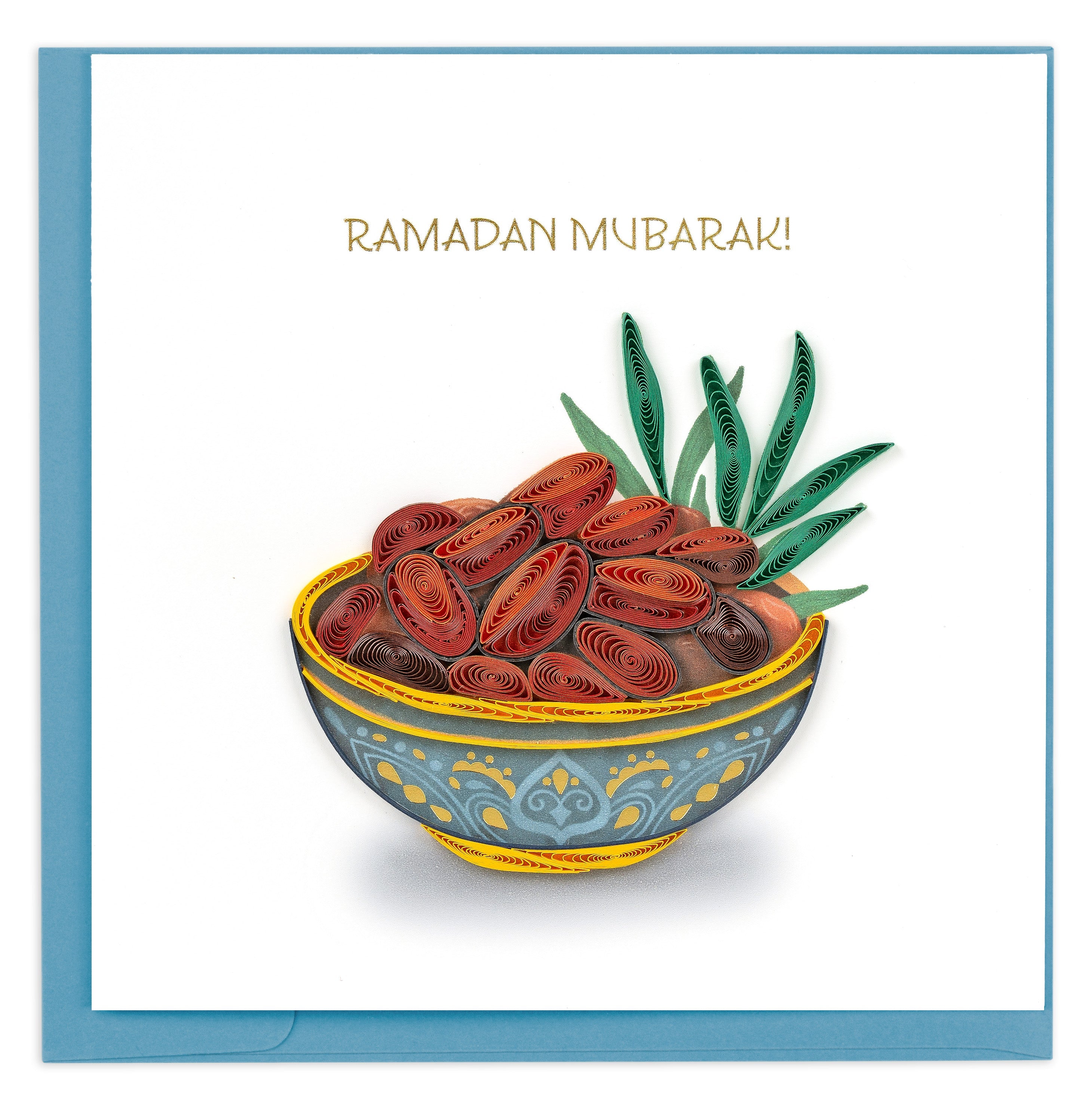 Celebrate the spirit of Ramadan with this intricately hand-quilled greeting card. Delicate paper scrollwork frames a thoughtful design honoring dates—a cherished symbol of the holy month. Perfect for sharing blessings with loved ones during this sacred season.