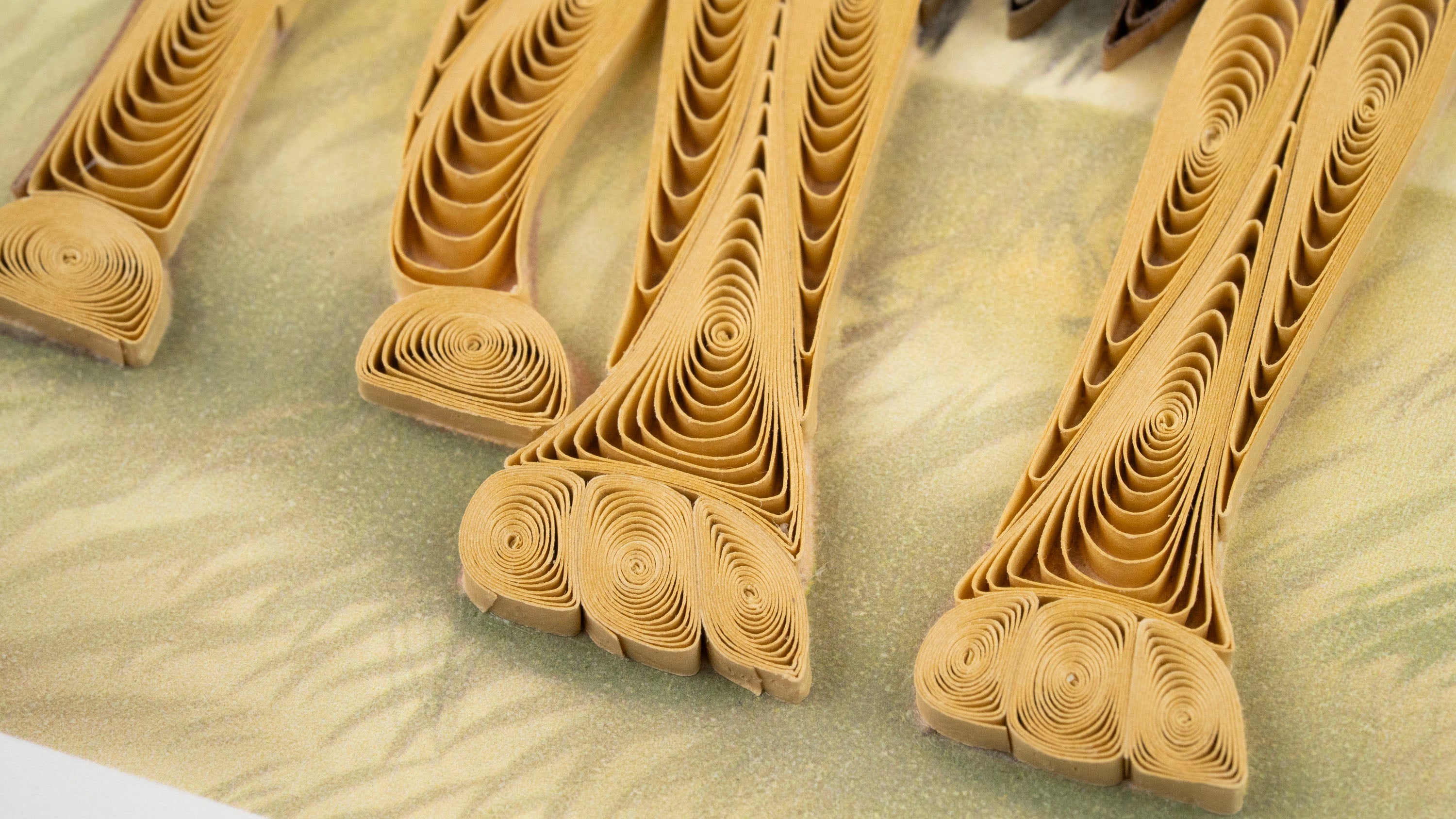 Our talented quillers coil, crimp, and place every individual quill on our cards. You can see more about the quilling process here!
