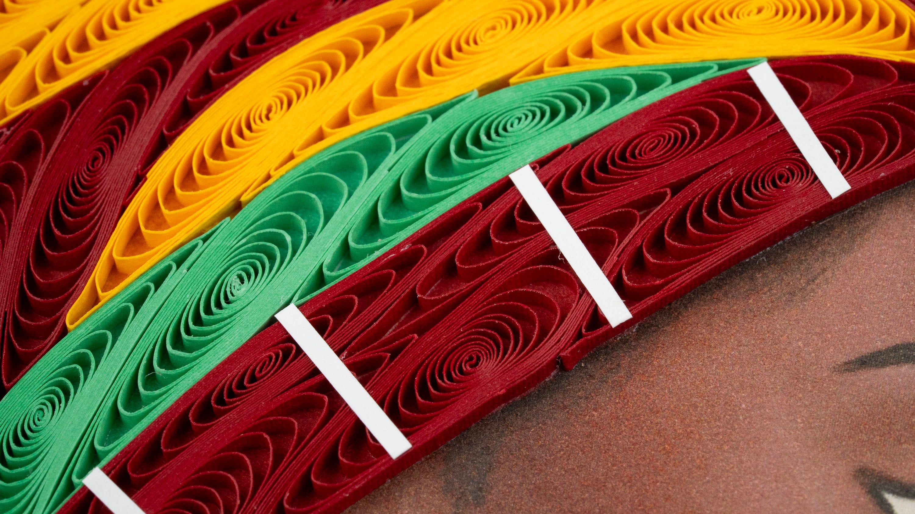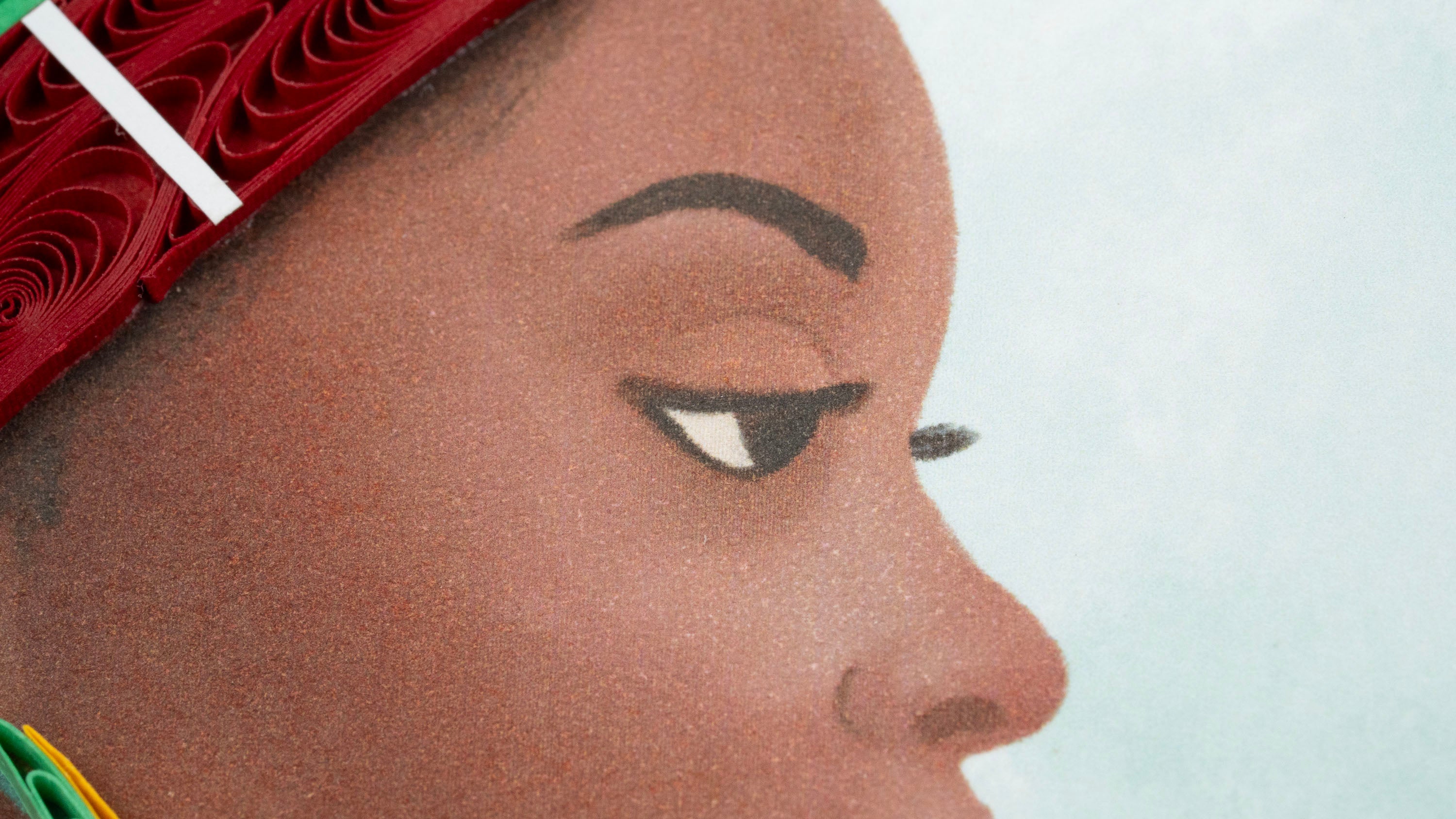 Celebrate the beauty of cultural identity with this striking hand-quilled greeting card. Intricate paper layers bring a vibrant woman adorned in a traditional headwrap to life, showcasing meticulous artisanal craftsmanship. Perfect for honoring heritage, expressing solidarity, or simply sharing appreciation for bold, meaningful art. A premium card for moments that deserve elegance.