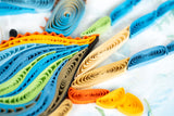 Our talented quillers coil, crimp, and place every individual quill on our cards. You can see more about the quilling process here!