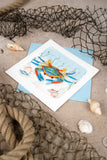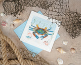 The Chesapeake Blue Crab features a whimsical depiction of this iconic crustacean, bringing a touch of coastal magic to your greetings. Perfect for any occasion, it's a claw-some way to add some marine merriment to your messages!