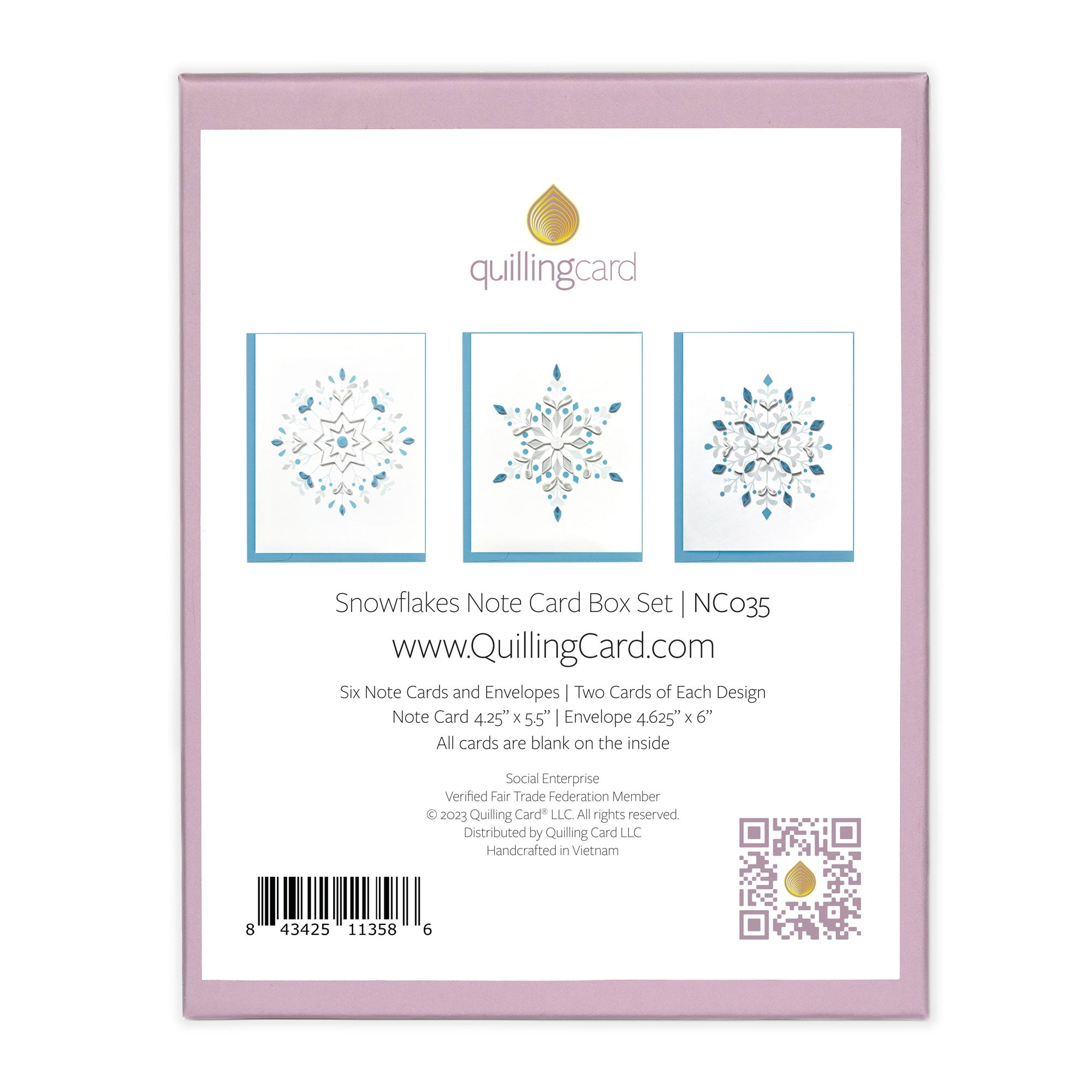 Elevate your messages with our Snowflake Note Card Box Sets, showcasing a captivating collection of six cards inspired by the intricate beauty of snowflakes. Each card, meticulously designed and replicated in pairs, provides a perfect canvas for expressing well wishes, sending invitations, or conveying gratitude. Paired with matching envelopes and featuring blank interiors, these note cards offer a pristine backdrop, allowing your personal touch to shine like glistening snow. Immerse your correspondence in the magical allure of winter with our Snowflake Note Card Box Sets, where every note becomes a symphony of seasonal elegance and frost-kissed charm.