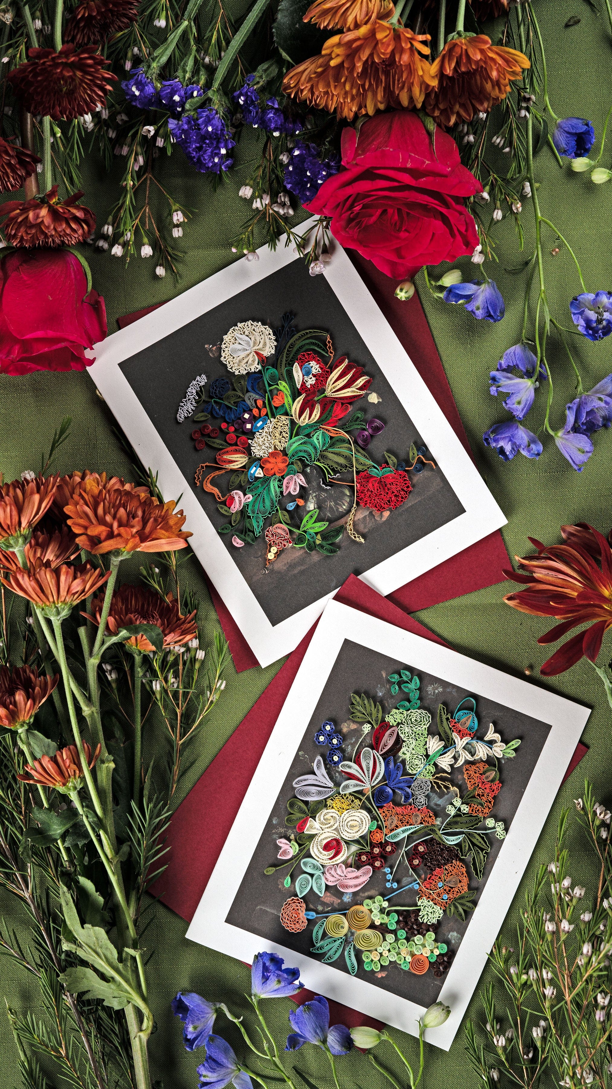 The Artist Series artfully transforms paint strokes into paper strips using the ancient art of quilling. Each card takes several hours to make and reimagines a famous work of art into a magnificent greeting card that can either be sent and shared with loved ones or kept and framed as the work of art it is.