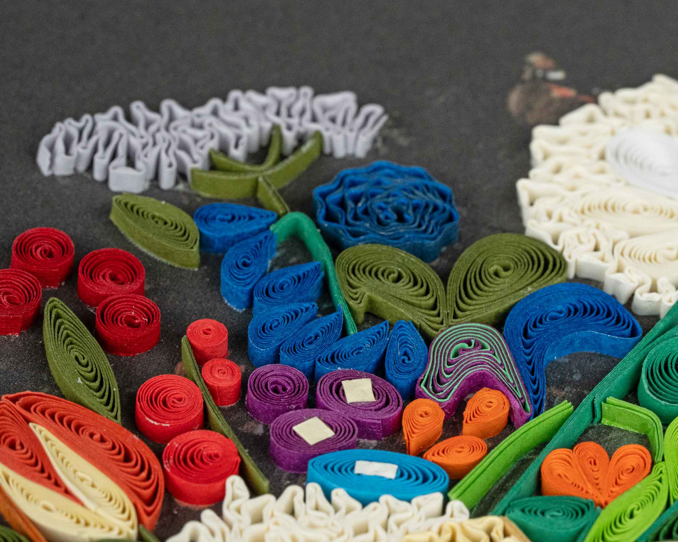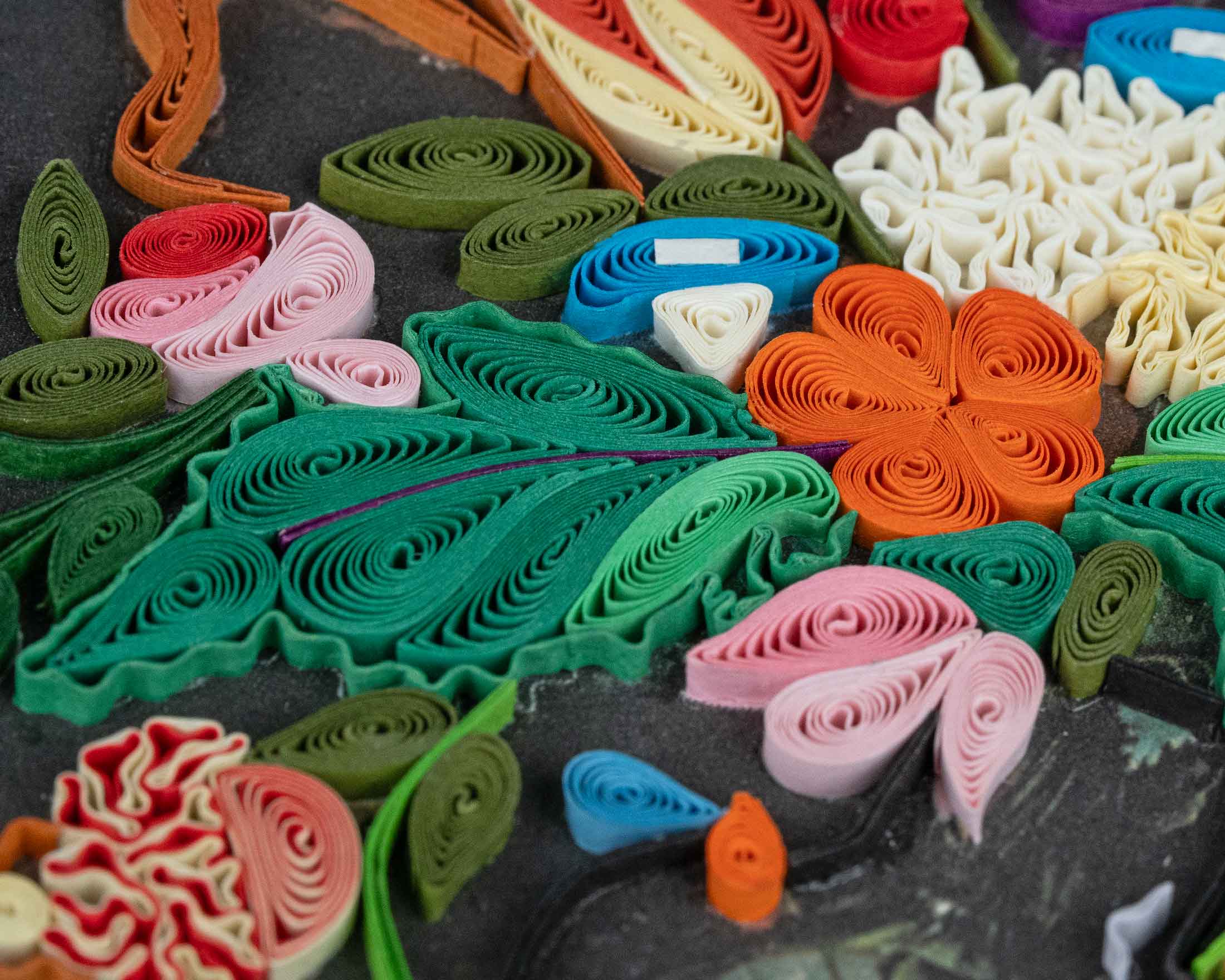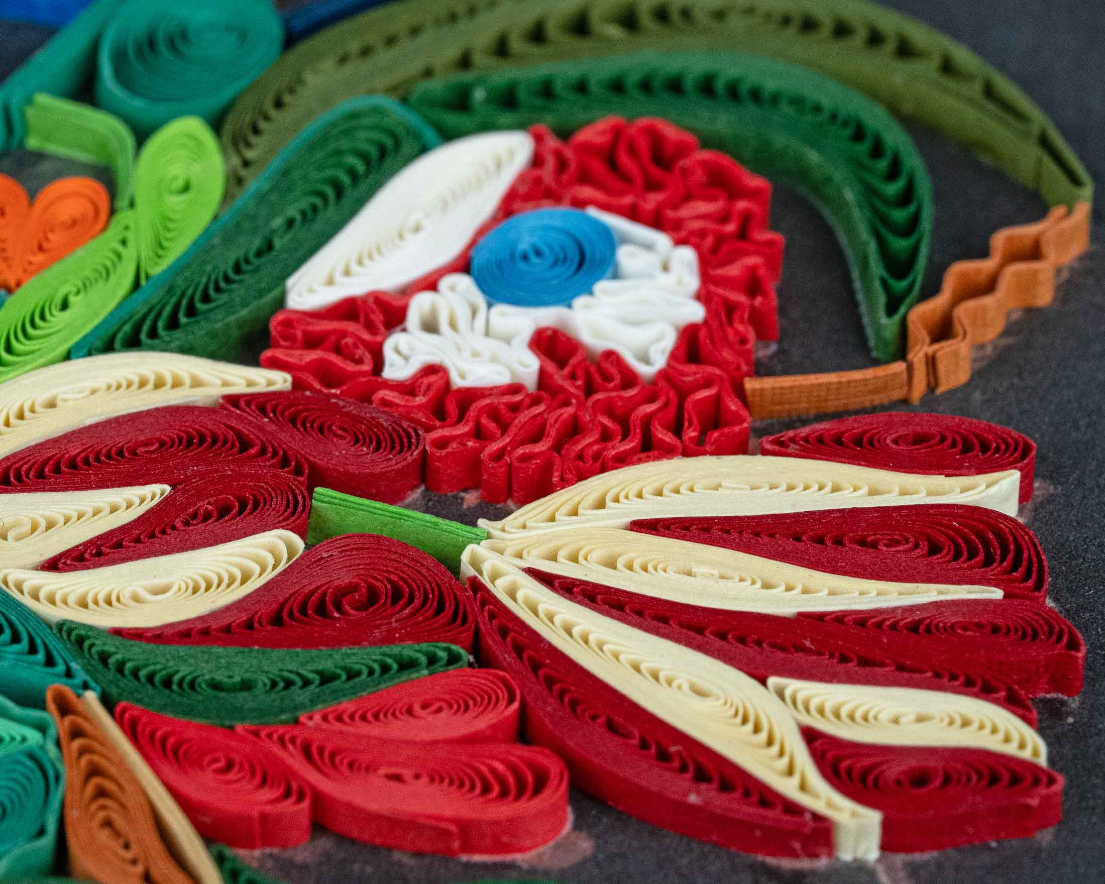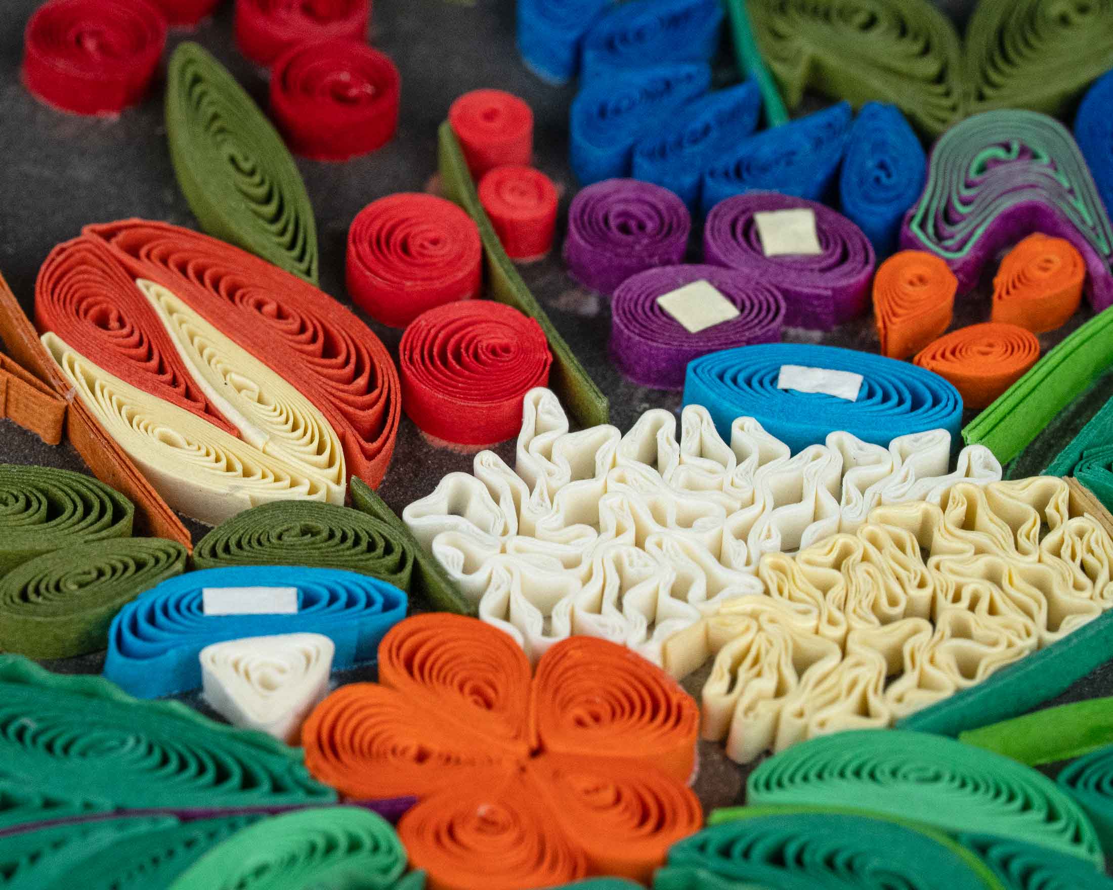 The art of quilling is the process of rolling and coiling strips of paper then arranging and glueing them to create a tactile three-dimensional design. Our cards are all handcrafted using this art form and can often be sent as gifts or art and more than just a card.