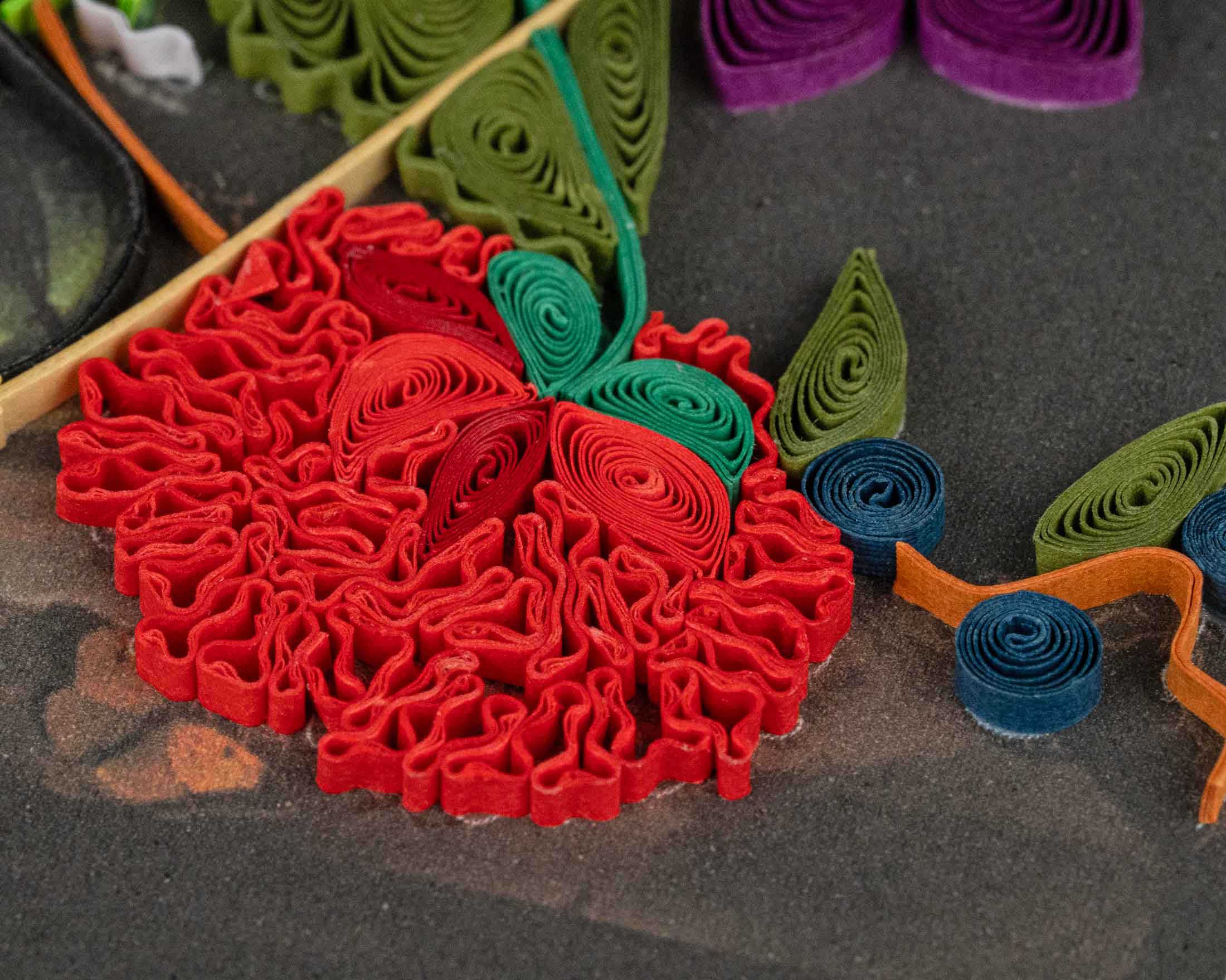 Each of our quilled cards are handmade by a highly skilled artisan. It takes one hour to quill each card.
