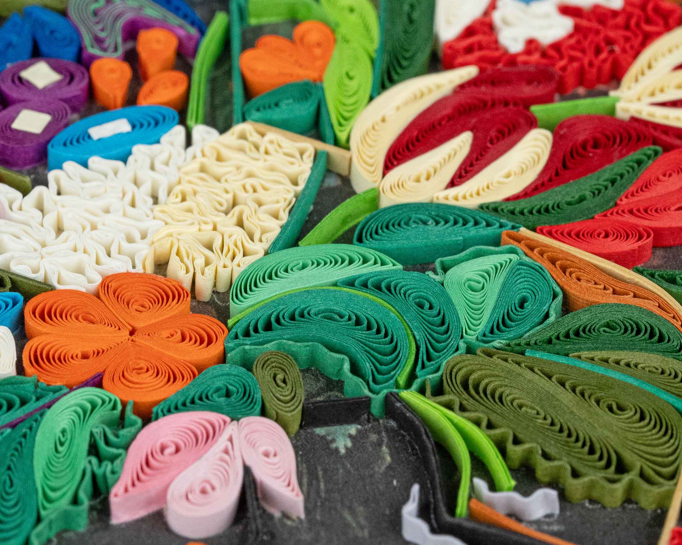 Our talented quillers coil, crimp, and place every individual quill on our cards. You can see more about the quilling process here!