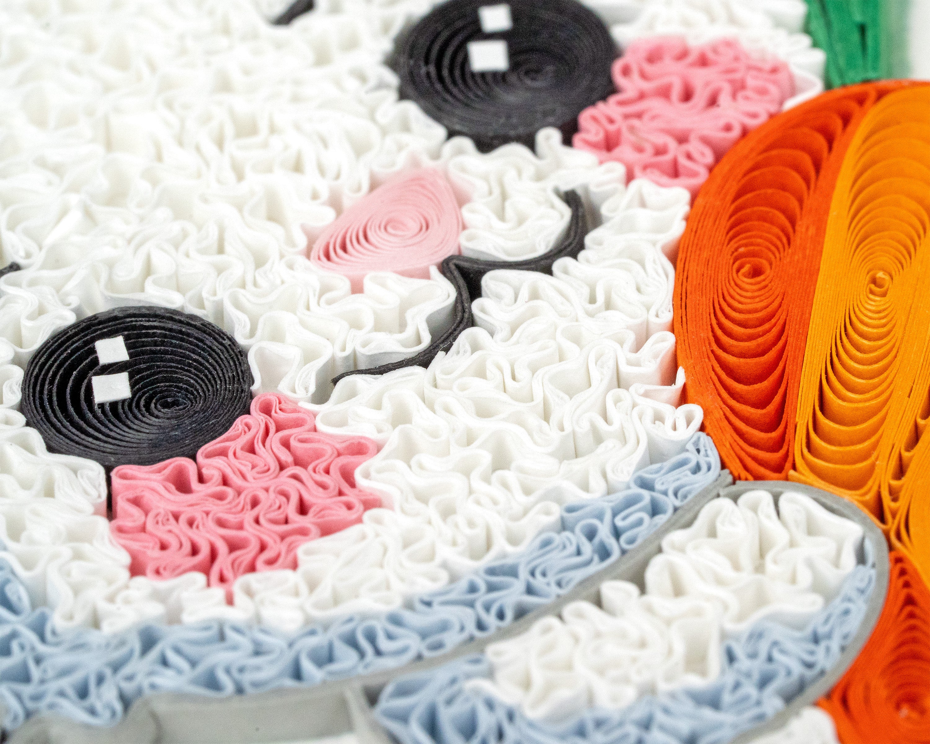 Our talented quillers coil, crimp, and place every individual quill on our cards. You can see more about the quilling process here!