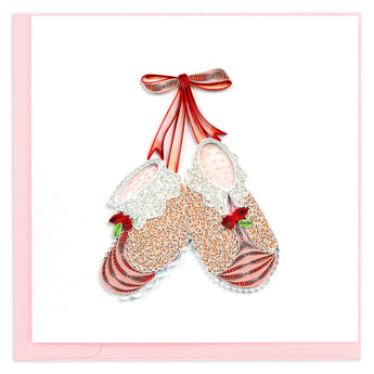 Quilled Knitted Pink Baby Booties Greeting Card