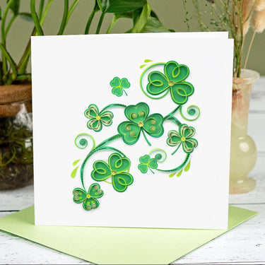 This is a collection of quilling St. Patrick's Day cards. Each card contains a lovely Quilled design on the front and a blank insert inside to write a warm, personalized message. All our cards are Fair Trade Certified and lovingly handcrafted.