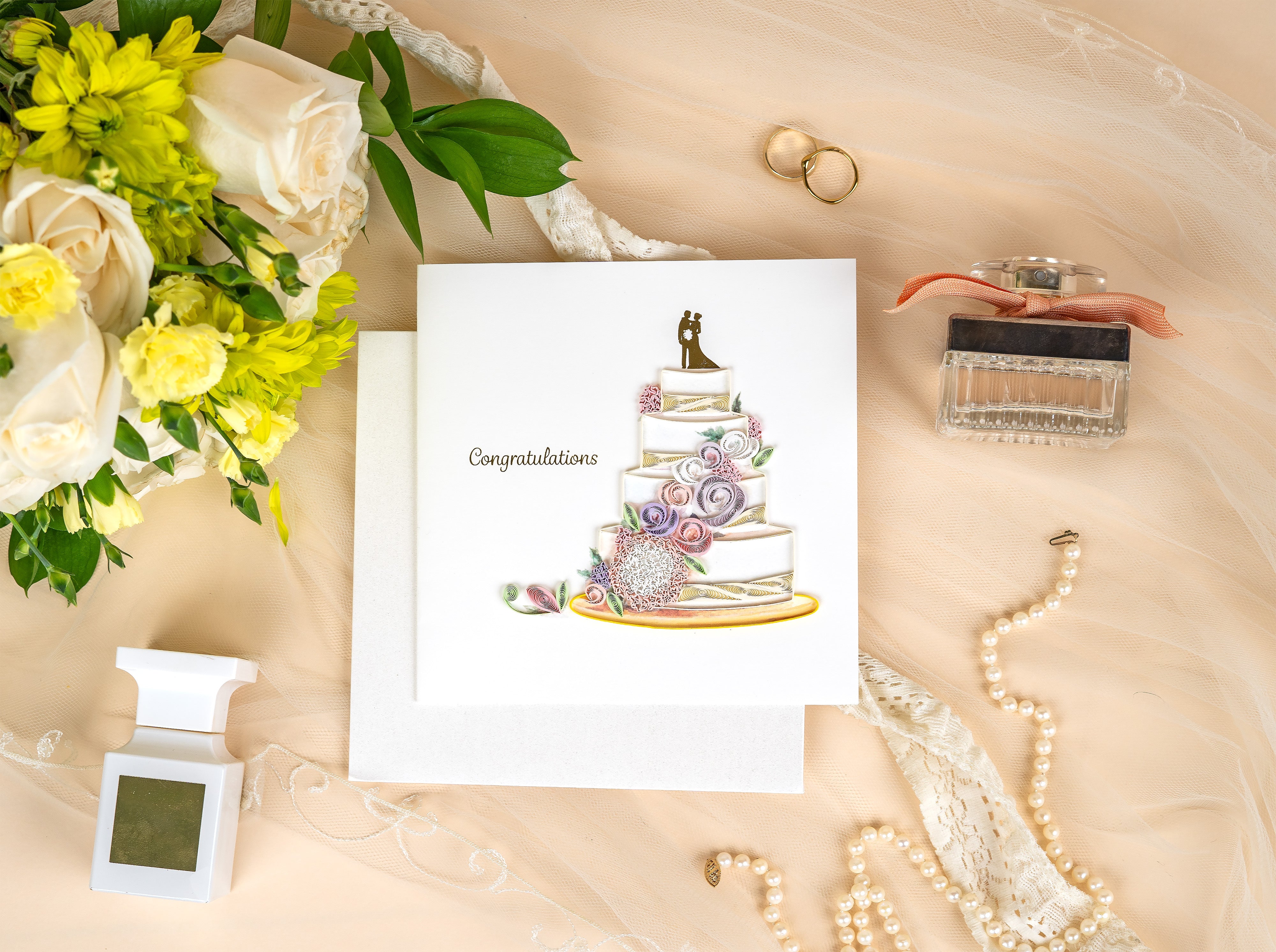 Quilled Floral Wedding Cake Greeting Card