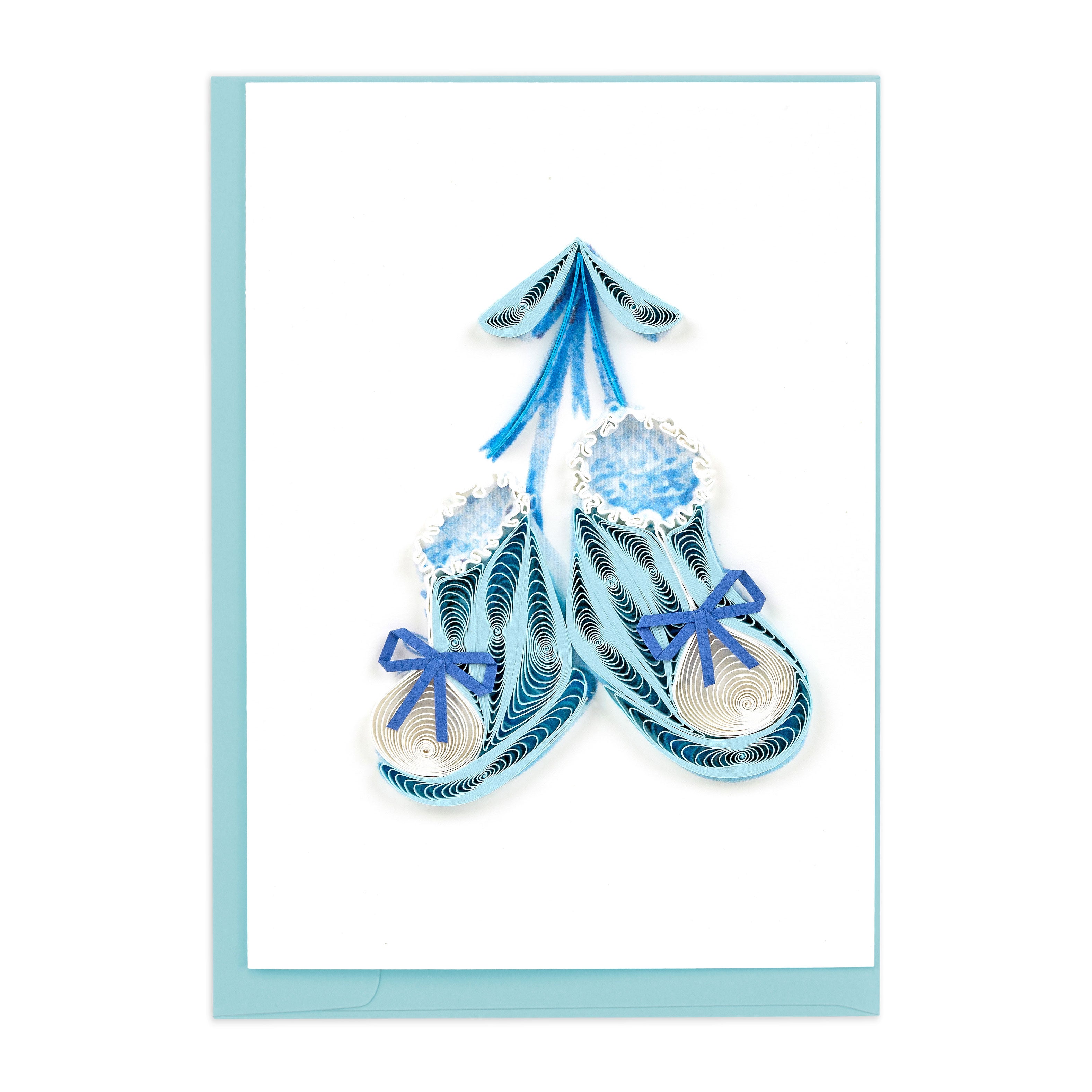 Quilled Knitted Blue Baby Booties Gift Enclosure Mini Card