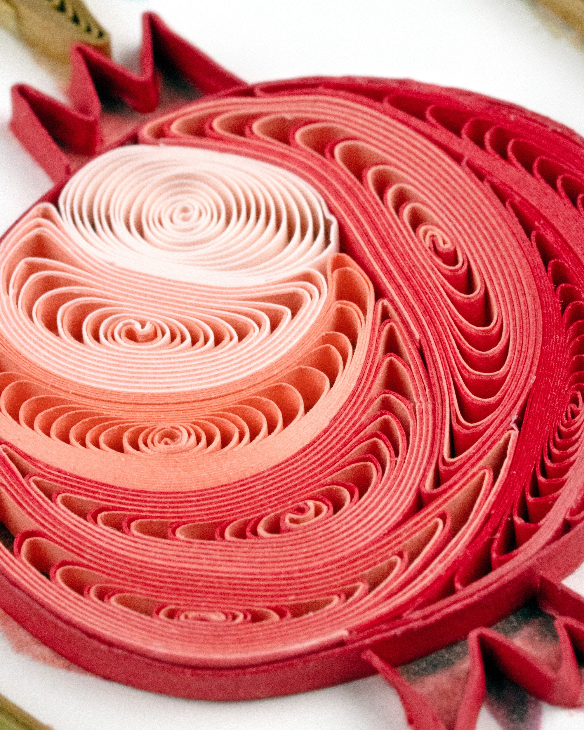 Our talented quillers coil, crimp, and place every individual quill on our cards. You can see more about the quilling process here!