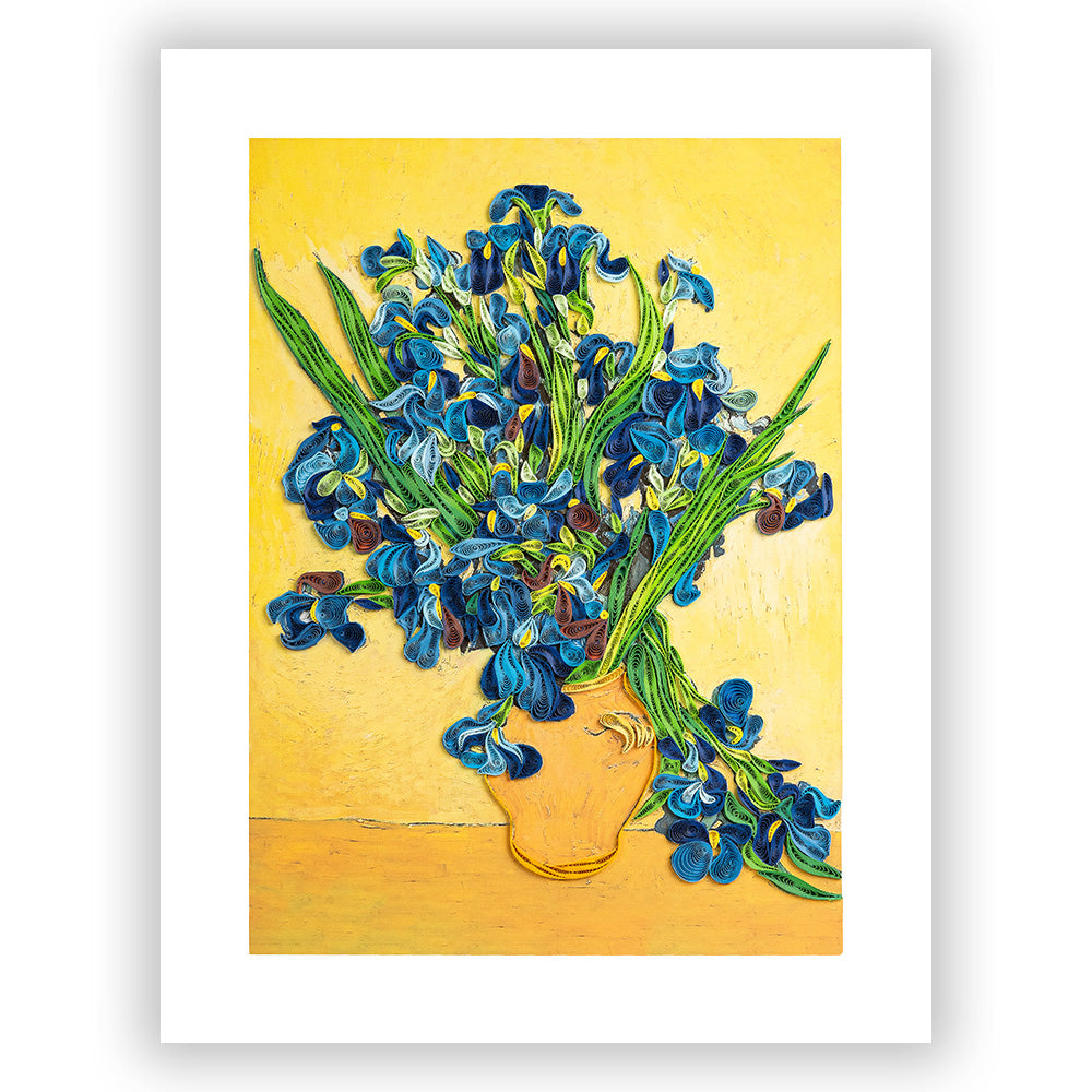 Introducing our stunning quilled wall art piece, inspired by Vincent Van Gogh’s “Irises.”