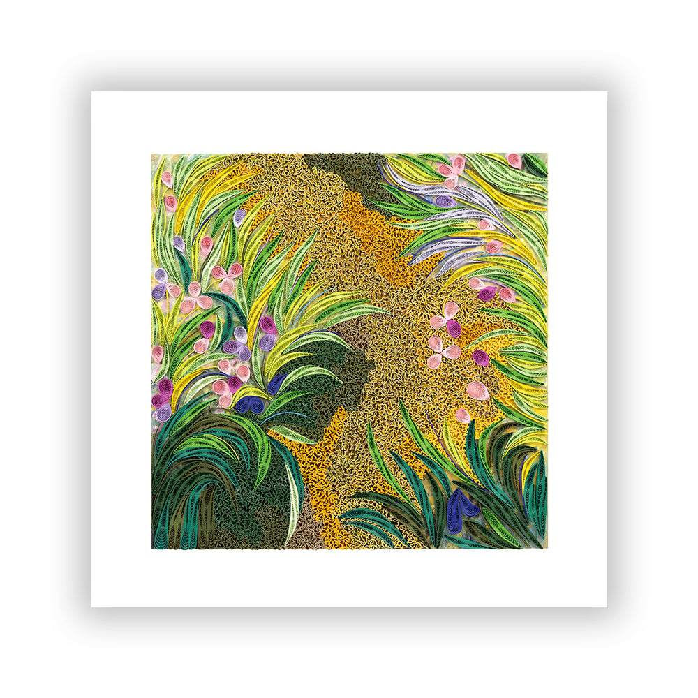 Introducing our captivating quilled wall art piece inspired by Claude Monet's "The Path through the Irises." Created in 1915 during the First World War, this mesmerizing artwork showcases Monet's deep appreciation for irises and his ability to capture the beauty of his beloved garden in Giverny. This historic work of art offers a bird's-eye view of the enchanting garden path at Monet's home. As you gaze upon the painting, you'll be transported into a world of vibrant colors and delicate blooms. Monet's skillful brushwork brings the irises to life, showcasing their intricate details and radiant hues.
