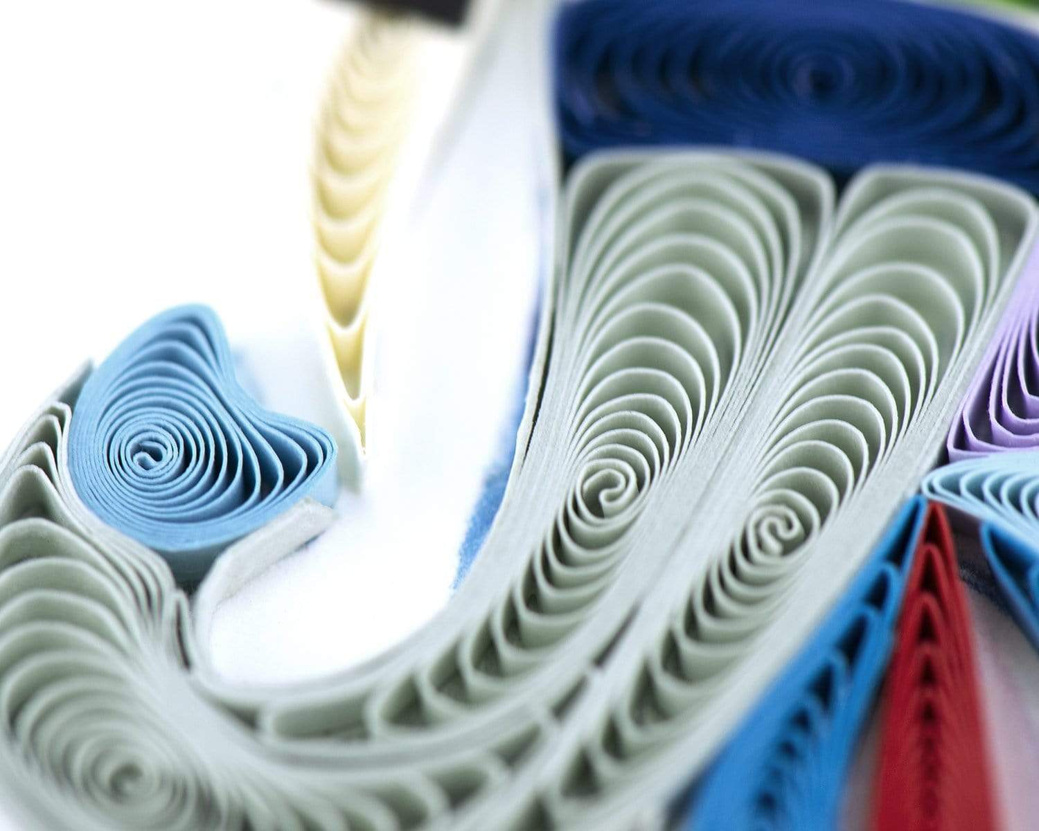 The art of quilling is the process of rolling and coiling strips of paper then arranging and glueing them to create a tactile three-dimensional design. Our cards are all handcrafted using this art form and can often be sent as gifts or art and more than just a card.