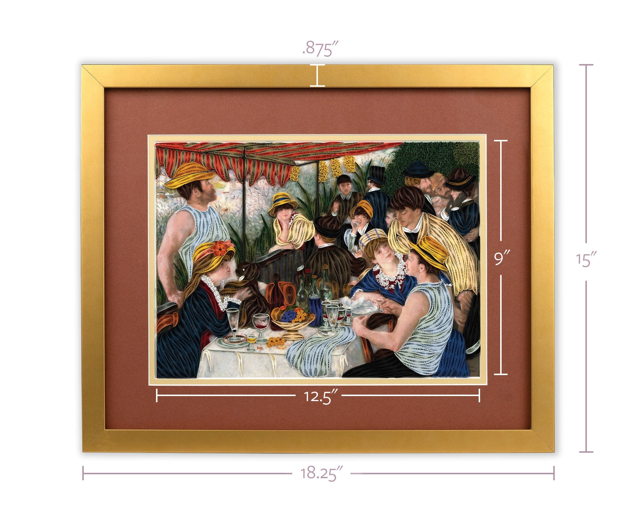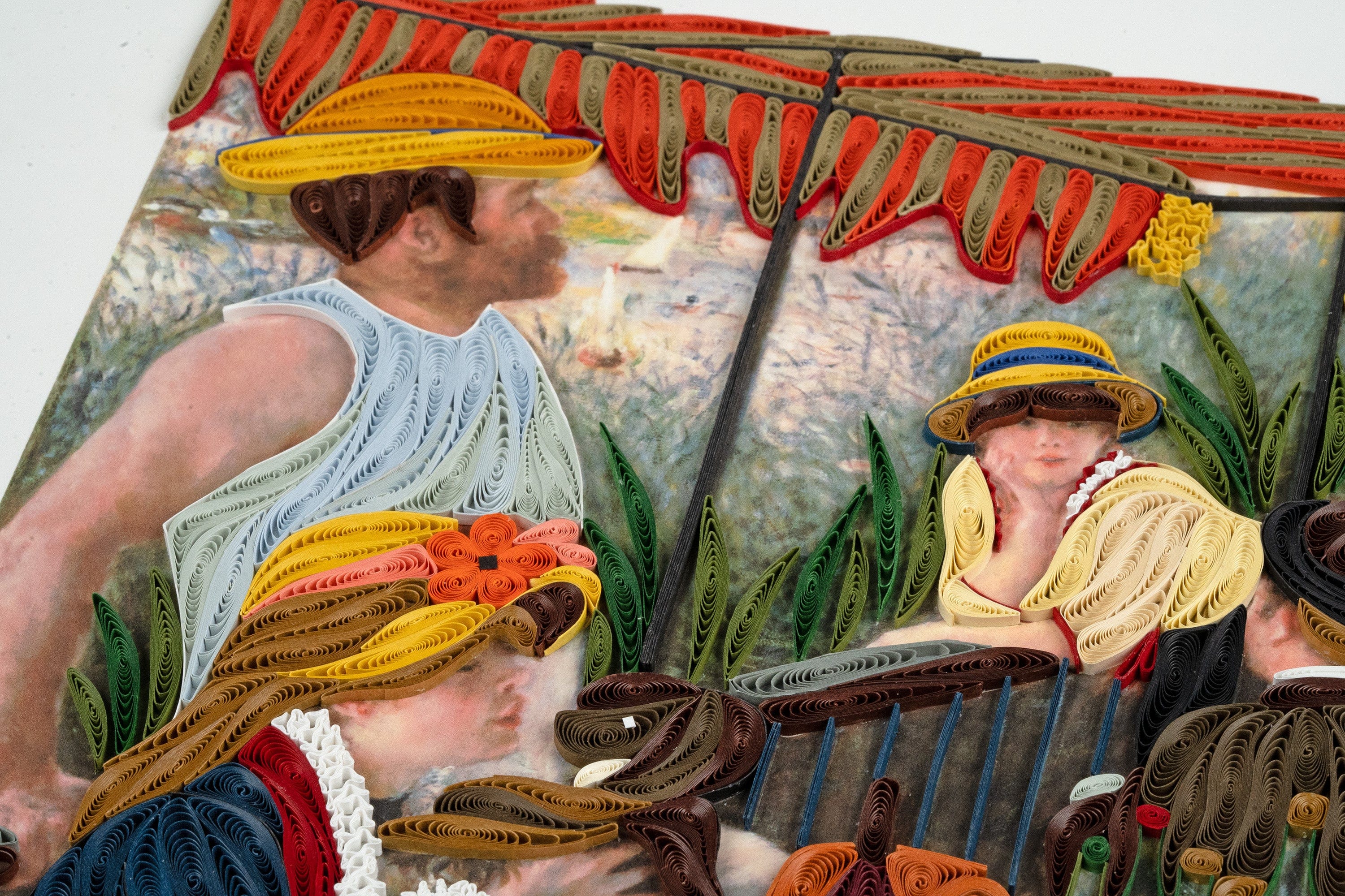 Introducing our exquisite quilled wall art piece, inspired by Pierre-Auguste Renoir's renowned masterpiece "The Luncheon of the Boating Party."