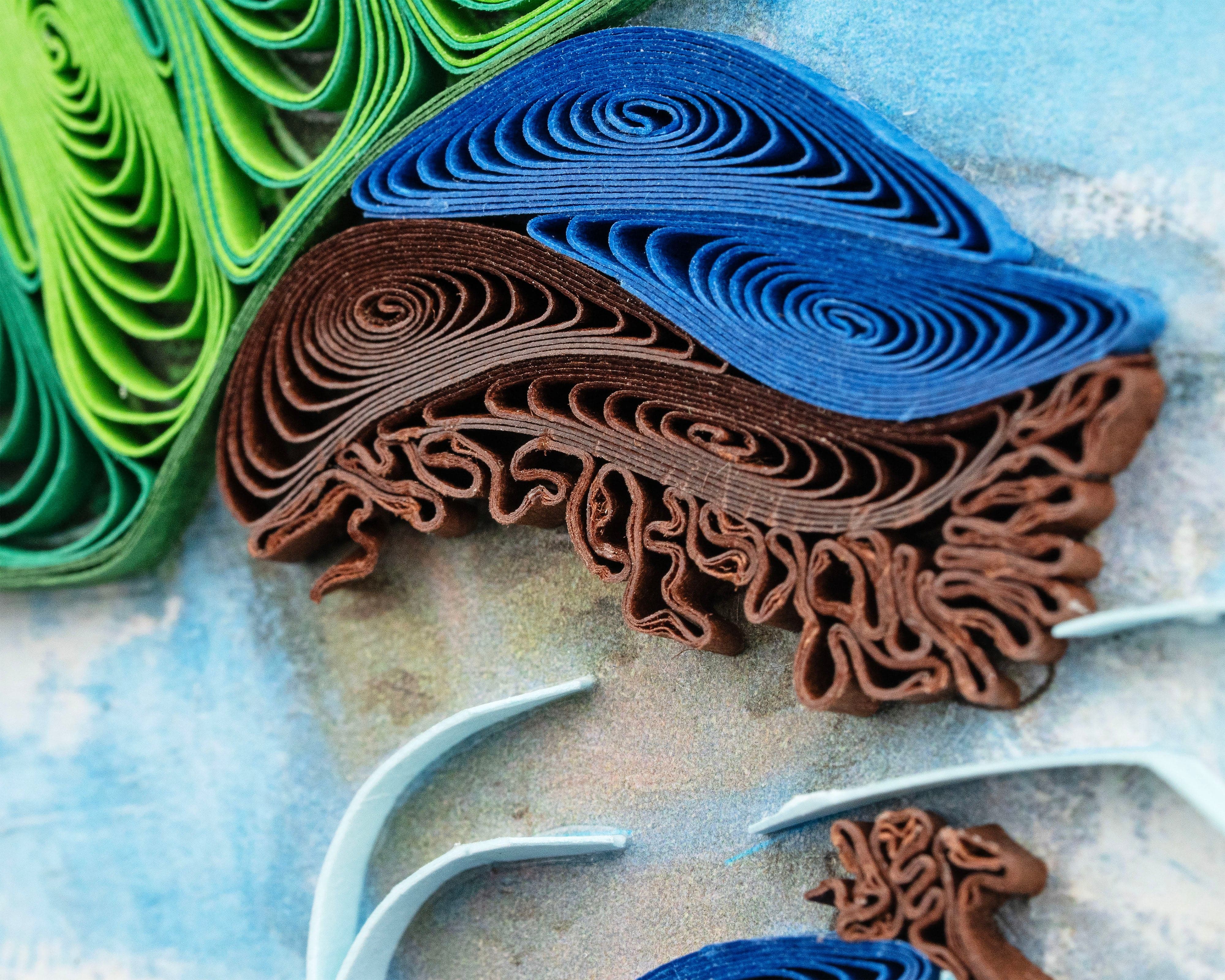 Our talented quillers coil, crimp, and place every individual quill on our cards. You can see more about the quilling process here!