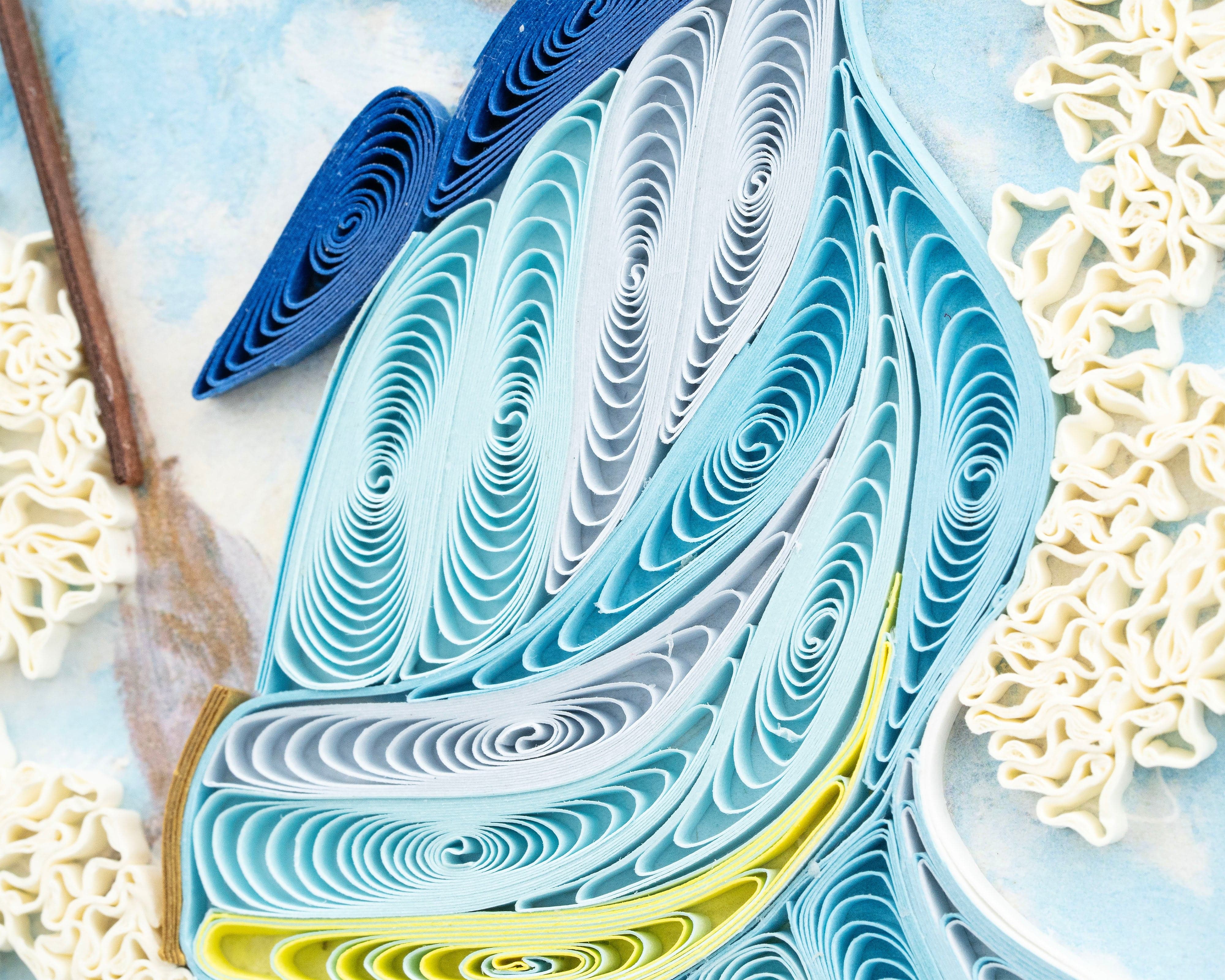 The art of quilling is the process of rolling and coiling strips of paper then arranging and glueing them to create a tactile three-dimensional design. Our cards are all handcrafted using this art form and can often be sent as gifts or art and more than just a card.