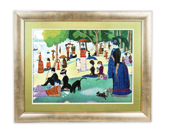 A Sunday Afternoon on the Island of La Grande Jatte by Georges Seurat is his most well-known and largest painting. Using pointillism, Seurat depicts people from different social classes strolling and relaxing in the park. This piece is said to be a founding work of the neo-impressionist movement. This Gallery sized piece comes framed and ready to become an elegant addition to any space.