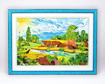 Introducing our captivating Limited Edition Quilled Wall Art: "Verdant Oasis Reverie." This exquisite piece transports you to a lush green oasis, where nature's vitality thrives amidst a canvas of refreshing hues, meticulously quilled to create a masterpiece that embodies the tranquility and allure of verdant landscapes.