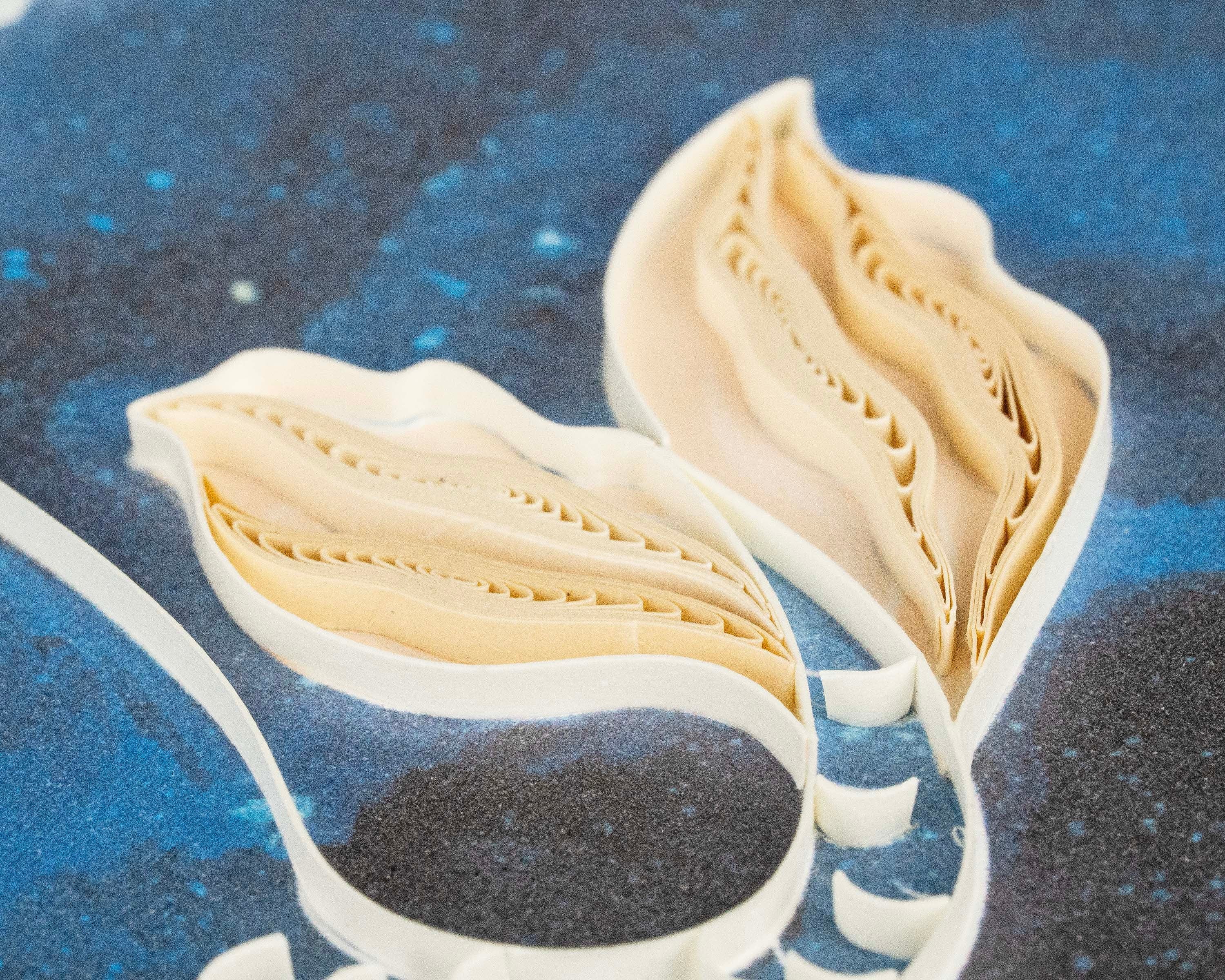 Our talented quillers coil, crimp, and place every individual quill on our cards. You can see more about the quilling process here!