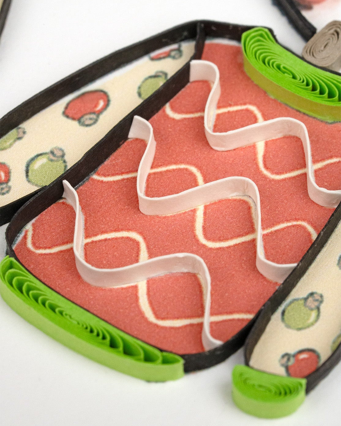 Our talented quillers coil, crimp, and place every individual quill on our cards. You can see more about the quilling process here!