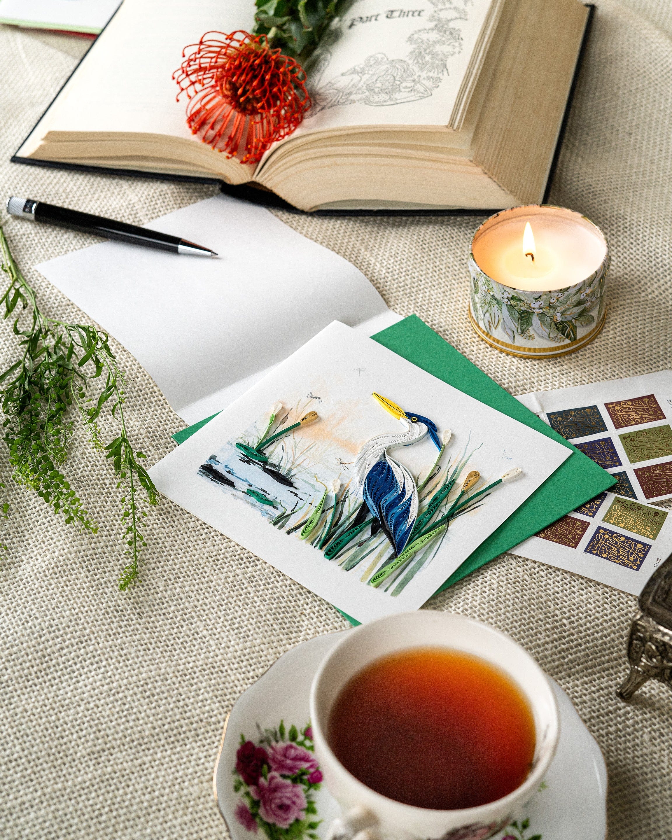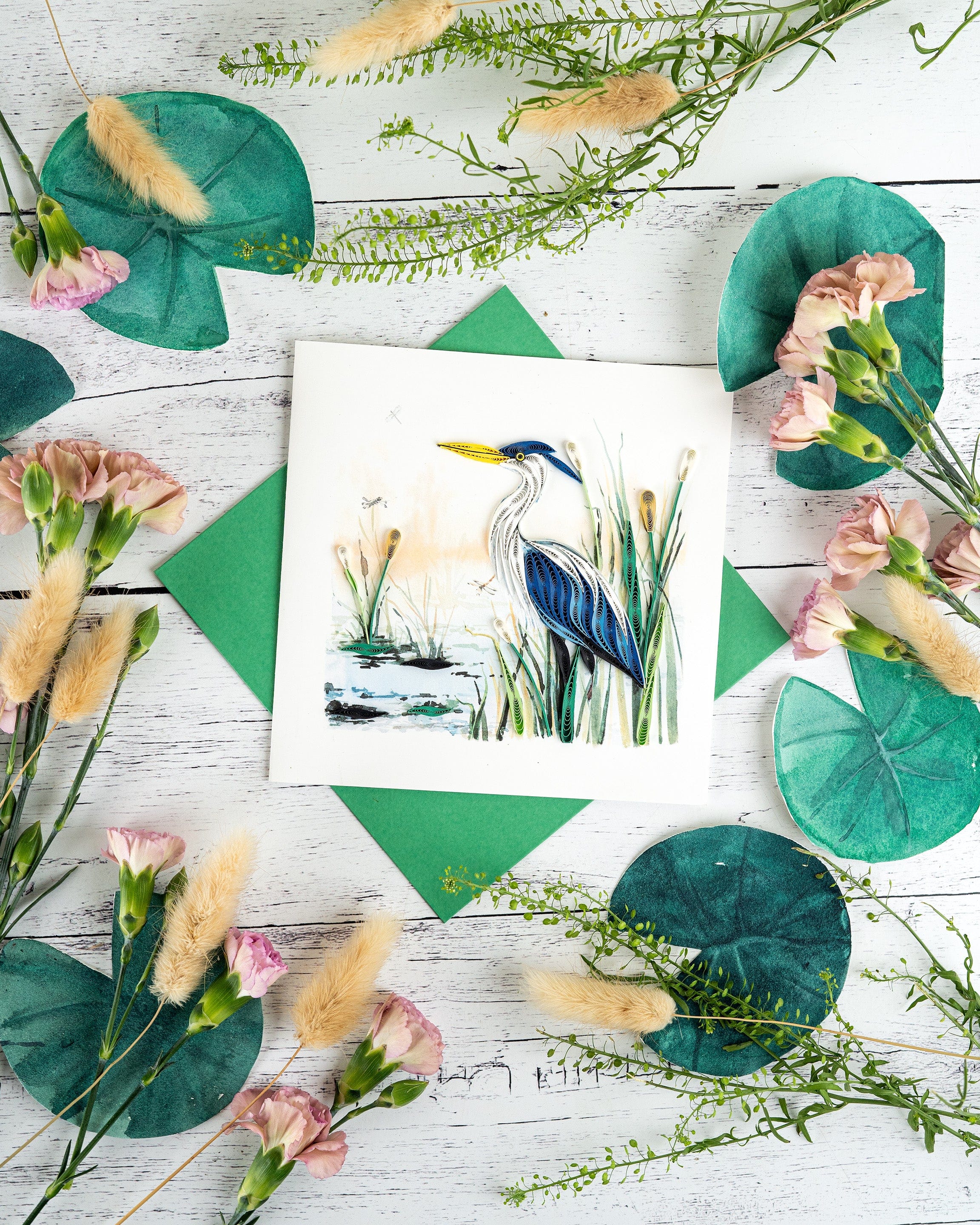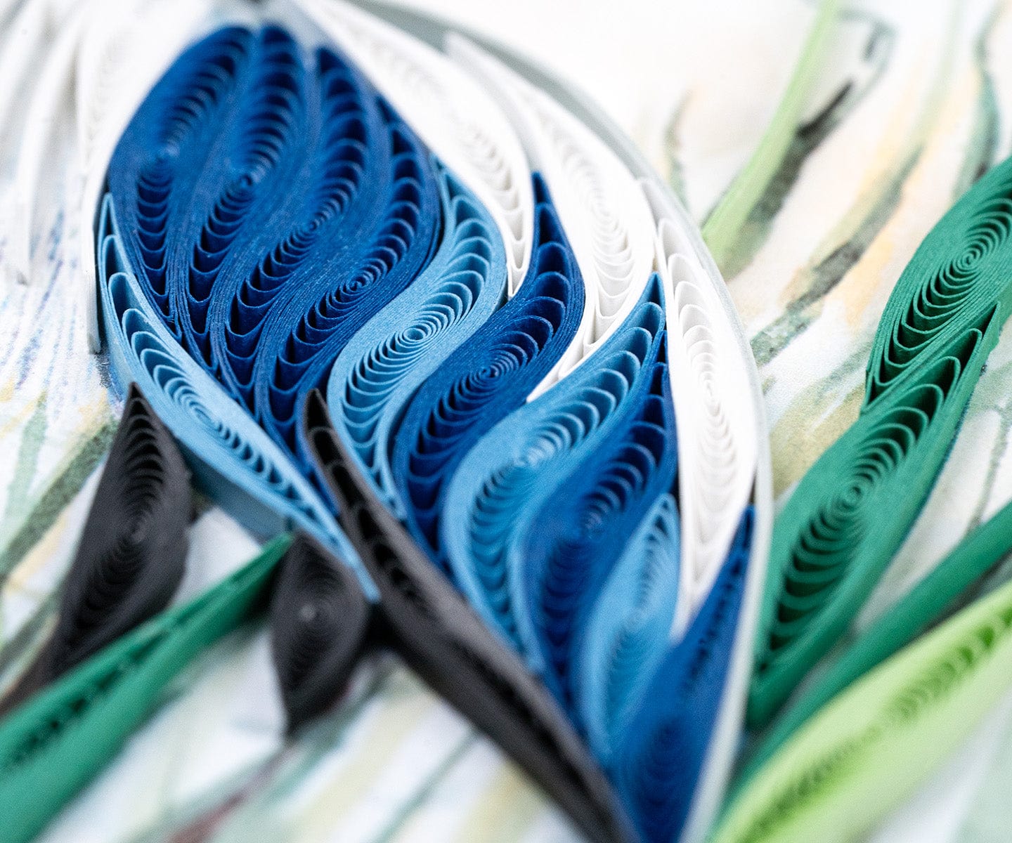 Unleash the beauty and self-determination with our Quilled Blue Heron Card. Symbolizing grace and resilience, this design showcases a stunning heron crafted in varying shades of blue, capturing the majestic presence of this remarkable bird. Share this card as an expression of admiration and empowerment, leaving a lasting impression