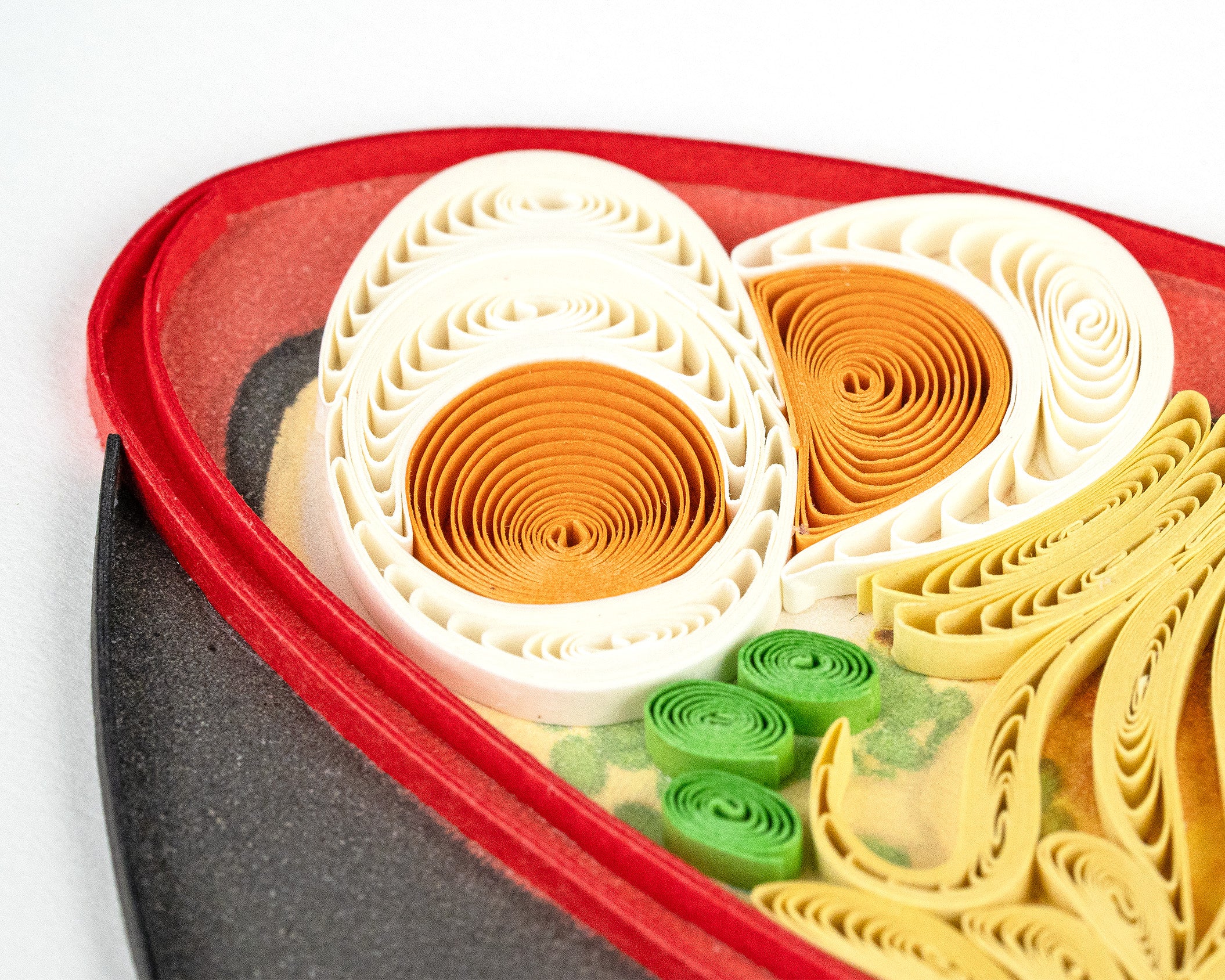 Savor the charm of this handcrafted quilling card featuring a delightful bowl of ramen. The intricate design captures the rich details of noodles, toppings, and broth, bringing this beloved dish to life. Perfect for any occasion, this unique card conveys warmth, comfort, and culinary joy. Let ramen inspire your message.