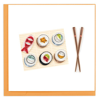 Delight in the artistry of this handcrafted quilling card featuring a beautifully detailed sushi board. Each piece of sushi is intricately designed to capture the vibrant colors and textures of this beloved cuisine. Perfect for any occasion, this unique card conveys messages of joy, celebration, and culinary appreciation.